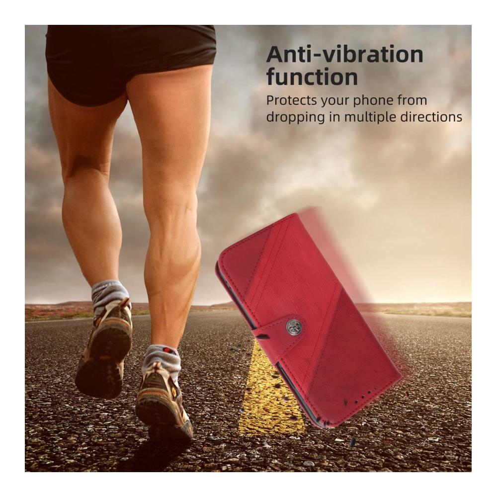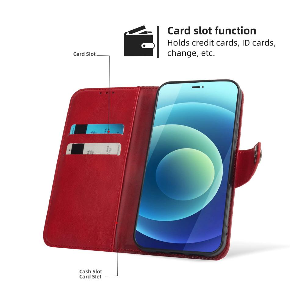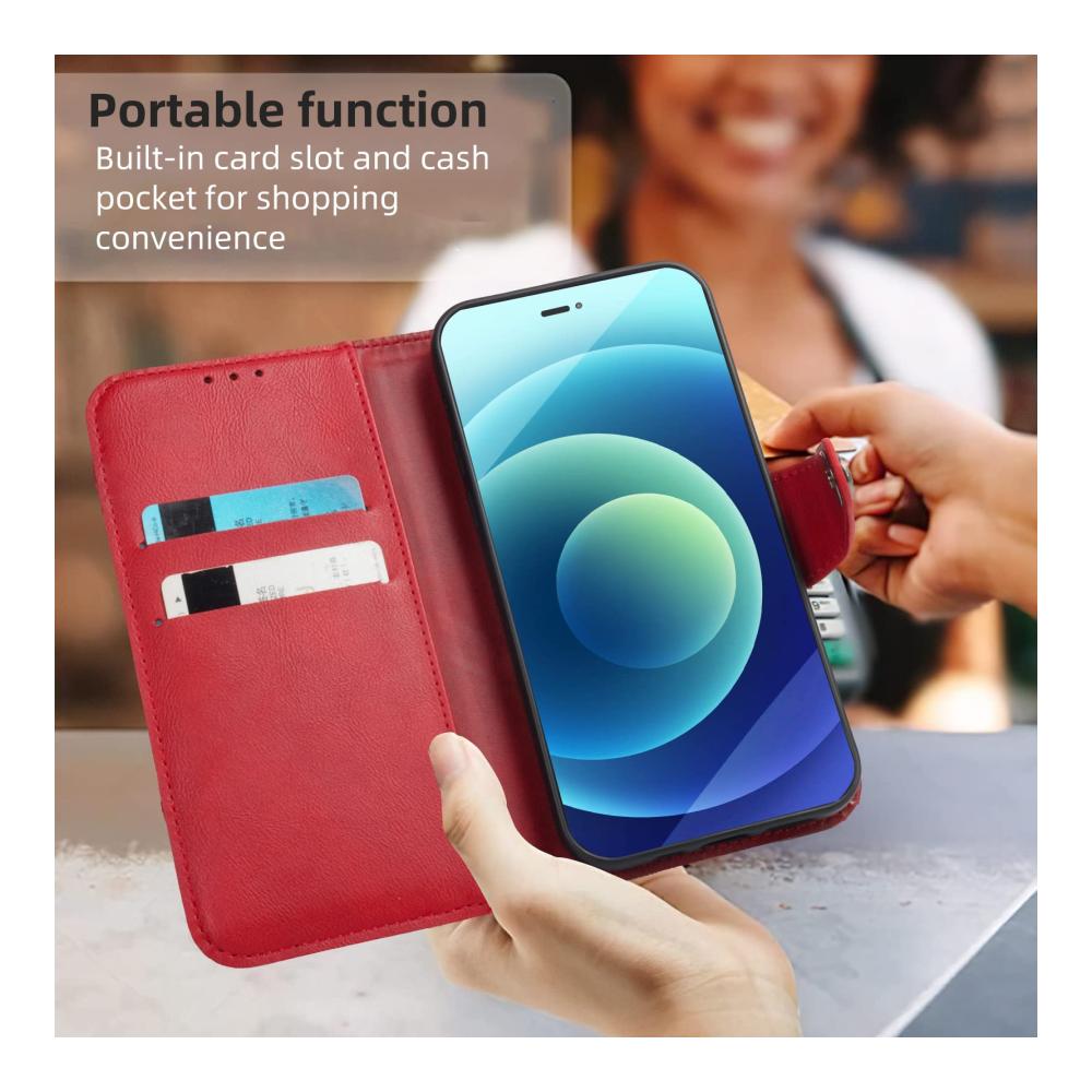 Das stoßfeste Design schützt Ihr Smartphone vor täglichen Stößen, Kratzern und anderen Beschädigungen, während das hochwertige Kunstleder ein ansprechendes Erscheinungsbild und ein angenehmes Gefühl in der Hand bietet. Die rote Farbe verleiht Ihrem Gerät einen Hauch von Eleganz und macht es zu einem echten Hingucker.