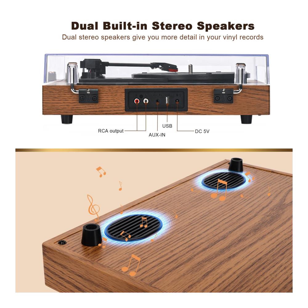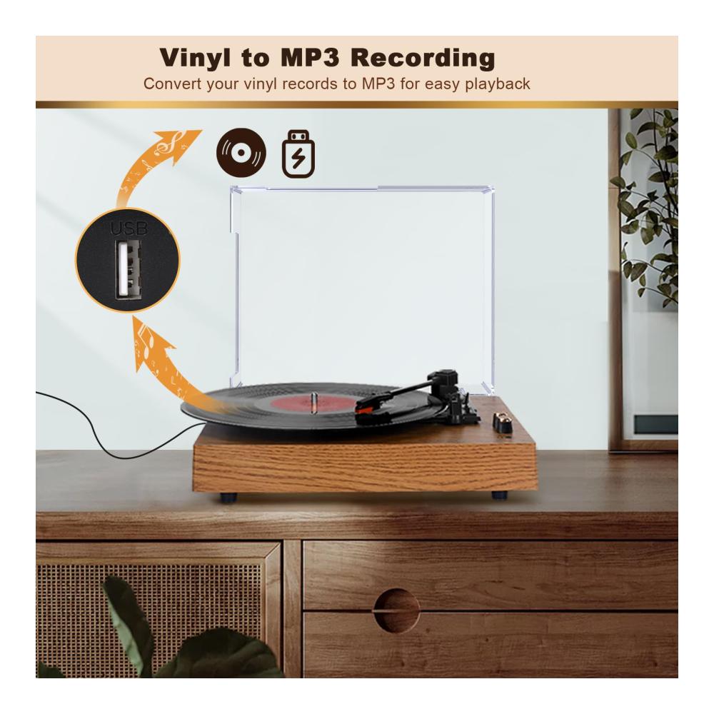 🎁【Vinly to Digital Format】 Der vinyl player unterstützt die digitale Aufnahme, er kann Ihre wertvolle Schallplatte in digitale MP3-Dateien umwandeln, einfach speichern und auf digitalen Geräten abspielen. Als Musikplayer, der Zeit und Moderne vereint, ist der Plattenspieler im Vintage- und Modestil ein tolles Ideal für Ihre liebevolle Familie und Freunde auf allen Festivals.