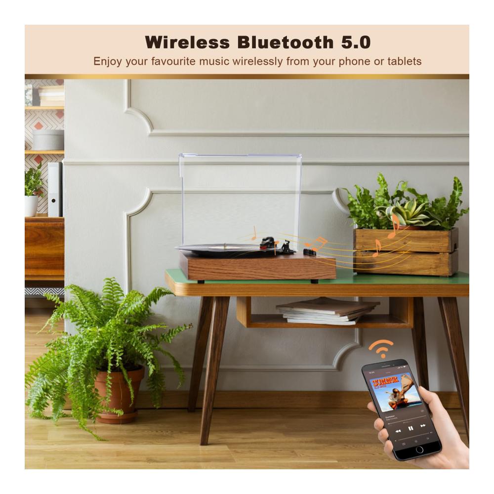 🎶【Bluetooth 5.0-Plattenspieler】Dieser schallplattenspieler ist mit einem verbesserten Bluetooth 5.0 ausgestattet, das eine stärkere Verbindung und größere Entfernungen sowie eine schnellere und stabilere Übertragung ermöglicht. Sie können Ihre Lieblingsmusik problemlos von Ihrem Bluetooth-kompatiblen Gerät wie einem Smartphone hören. Wichtig: Ihr Plattenspieler kann Bluetooth-Signale von anderen Geräten empfangen, aber selbst keine Bluetooth-Signale senden.