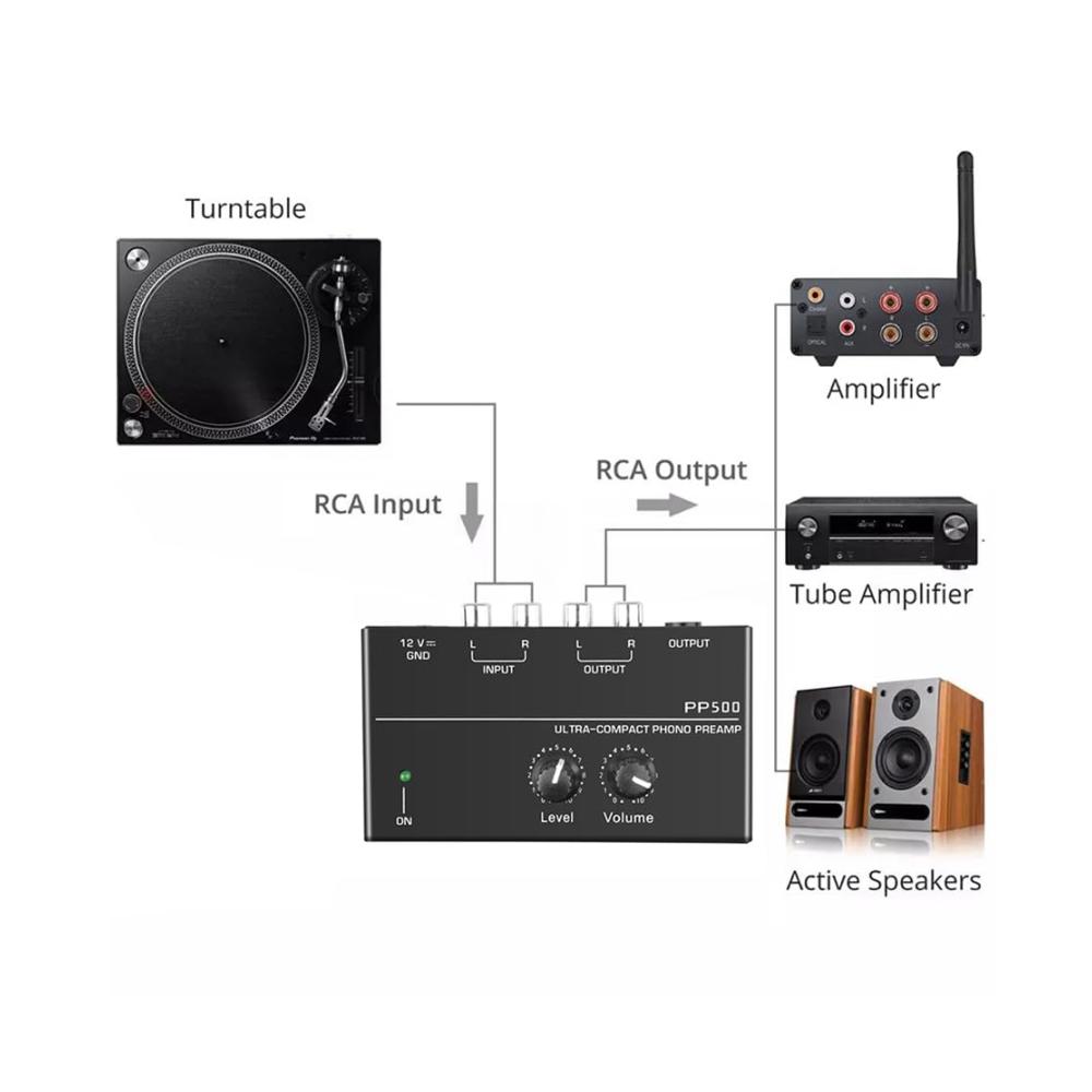 QELLON Steckertyp: EU-Stecker, gilt für Indonesien, Deutschland, Frankreich, Spanien, Italien usw.Spannung: AC100-240VUltra niedrige Audioleistung, bietet hervorragende Klangqualität.Artikeltyp: Phono-VorverstärkerAnschluss: RCA 1/4 -SteckerStromversorgung: DC 12VEingang: 110-240 V 50/60 HzAusgang: 12V 500mAMaterial: MetallGröße: 10,3 x 5,7 x 3 cm/4,05 x 2,2 x 1,1 Farbe: SchwarzPaketinhalt:1 x Phono-Vorverstärker1 x NetzteilNur der oben genannte Paketinhalt, andere Produkte sind nicht enthalten.Hinweis: Wegen der Lichtreflexion und Bildschirme könnte der Farbeton in den Fotos sowie des tatsächlichen Produkts etwas unterschiedlich sein. Der erlaubte Messfehler ist /- 1-3 cm.