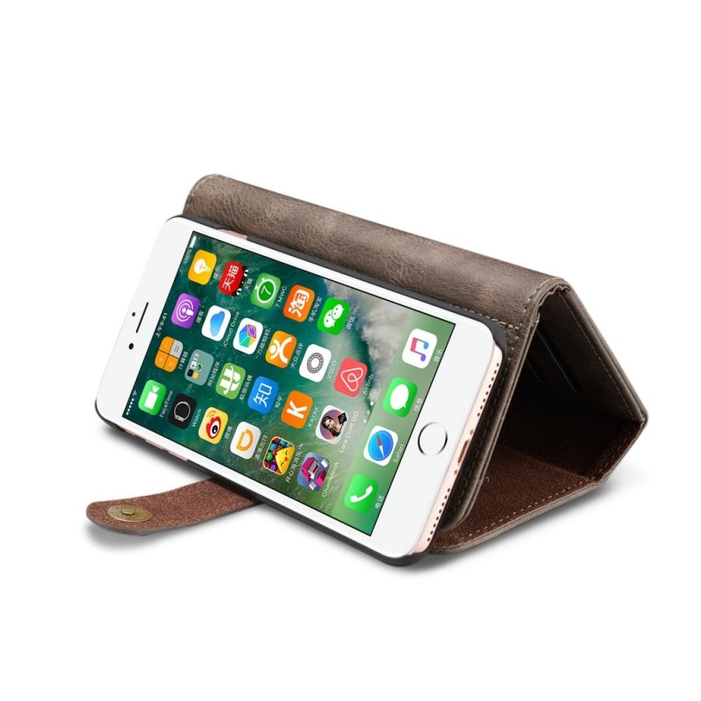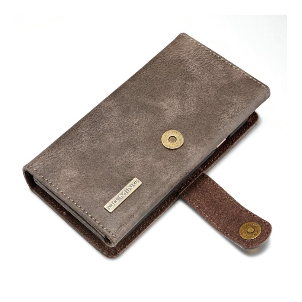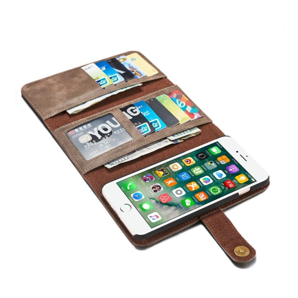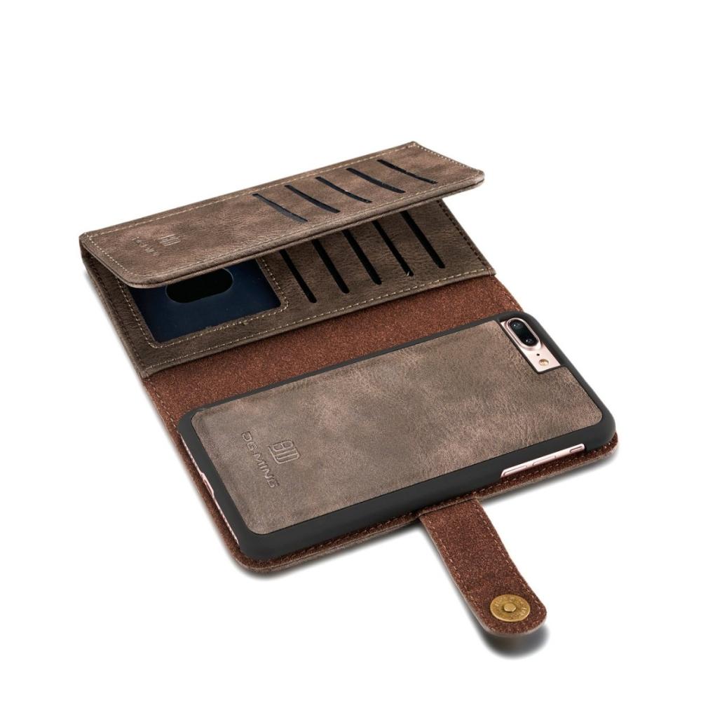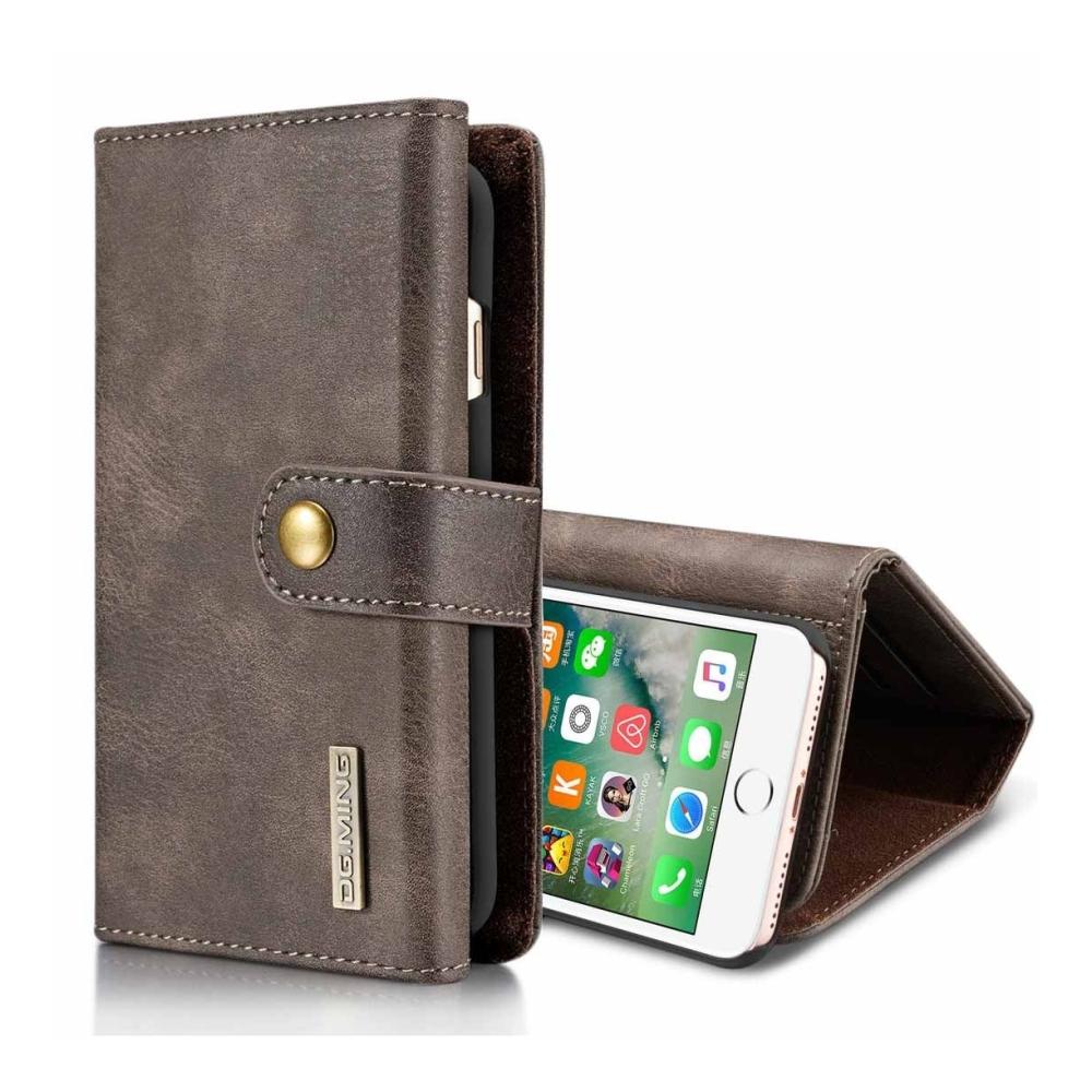 Die DG.MING Schutzhülle für das iPhone 8 Plus & 7 Plus bietet Standard-Schutz in einem praktischen Design. Mit integriertem Halter, Kartensteckplätzen und einer Brieftasche ist sie ideal für den täglichen Gebrauch. Die hochwertige Crazy Horse Textur verleiht der Hülle einen stilvollen Look, während der magnetische Verschluss für sicheren Halt sorgt. Jetzt in Grau erhältlich.