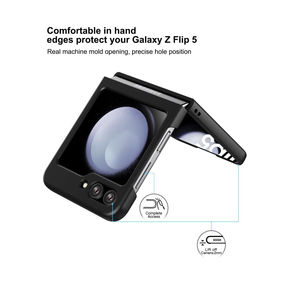 Kompatibilität: Exklusiv entworfen für Samsung Galaxy Z Flip 5 5G 2023. Präzise Aussparungen ermöglichen vollen Zugriff auf alle Funktionen und Bedienelemente (Kamera, Fingerabdruck-Sensor, Tasten, Anschlüsse, kabelloses Laden usw.). Paket beinhaltet: 1X Galaxy Z Flip 5 5G 2023 Hülle, 1X Front Built-in Galaxy Z Flip 5 5G 2023 Displayschutz.