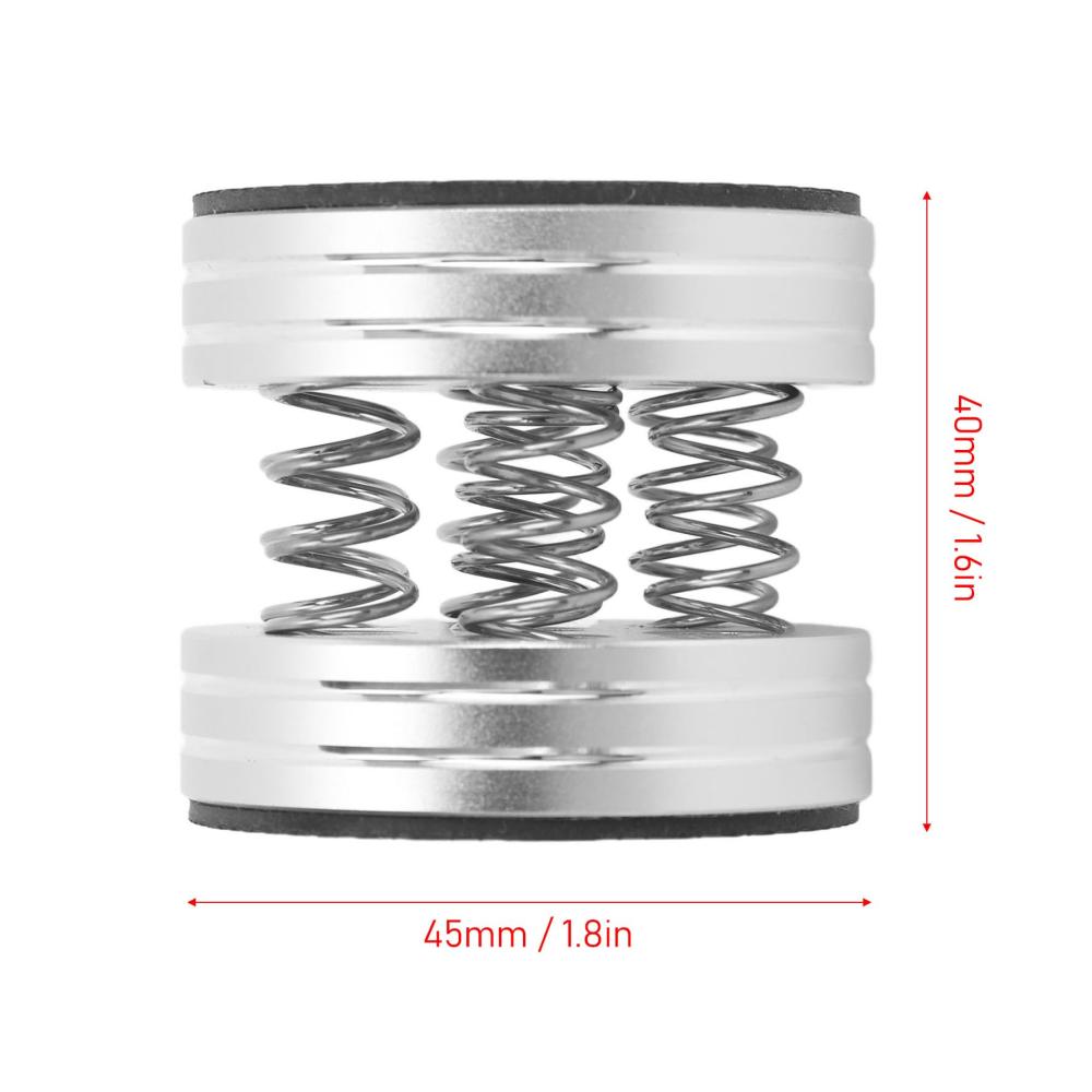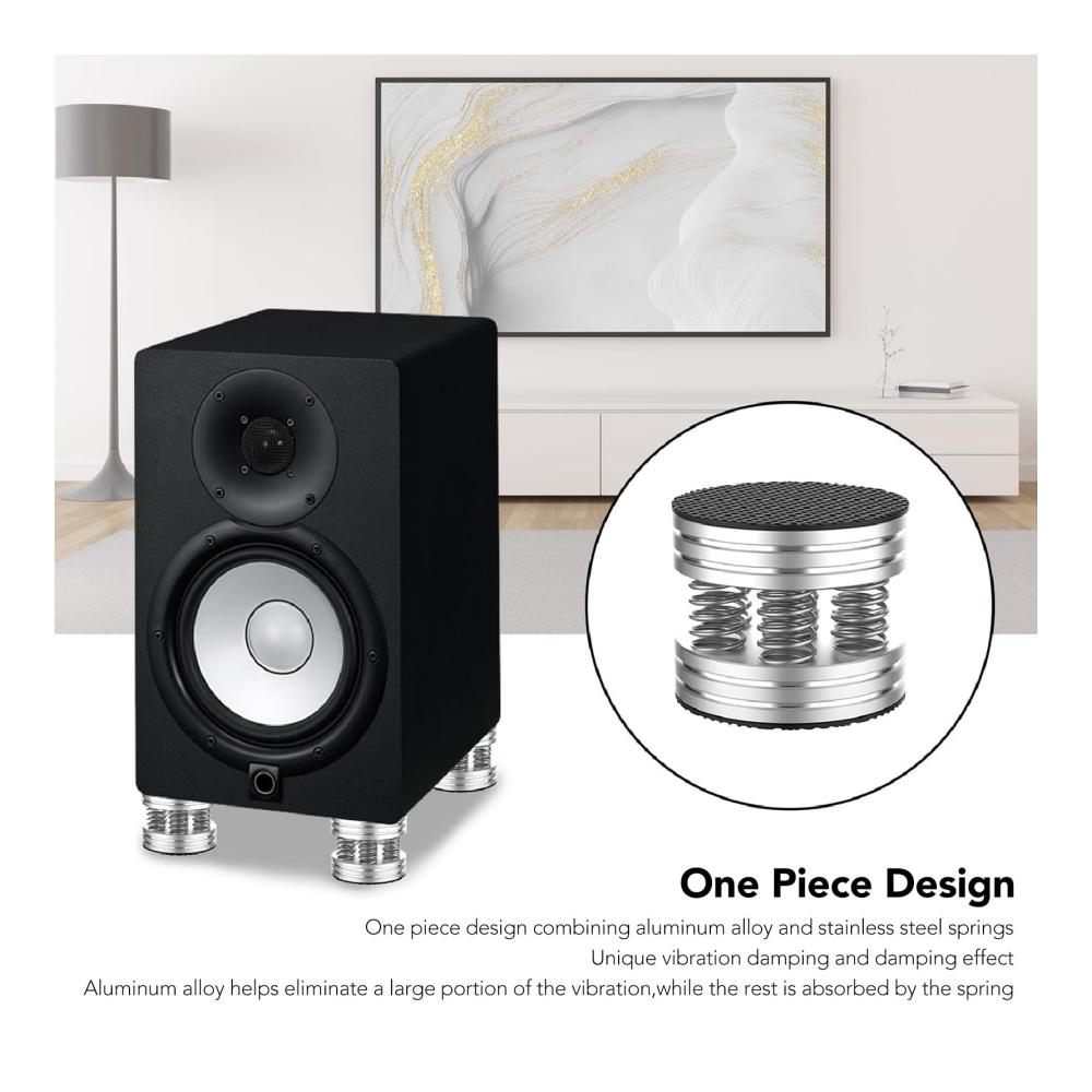EINTEILIGES DESIGN: Unsere Lautsprecherisolationsfüße haben ein einteiliges Design, das eine Aluminiumlegierung und eine Edelstahlfeder kombiniert, was eine einzigartige Vibrationsdämpfung und Dämpfungswirkung hat. Die Aluminiumlegierung trägt dazu bei, einen großen Teil der Vibrationen zu eliminieren, während der Rest der Vibrationen von der Feder absorbiert wird.