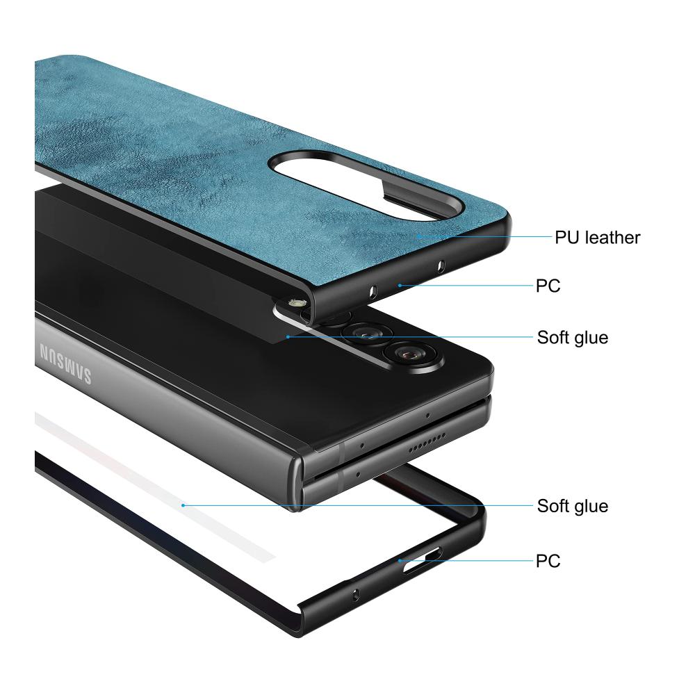 Langlebiger Schutz: Die Lederhülle für das Galaxy Z Fold 3 5G besteht aus hartem PC-PU-Leder. Klassische PU-Kunstleder-Rückseite bietet stilvoll einen eleganten und modischen Look und Gefühl.