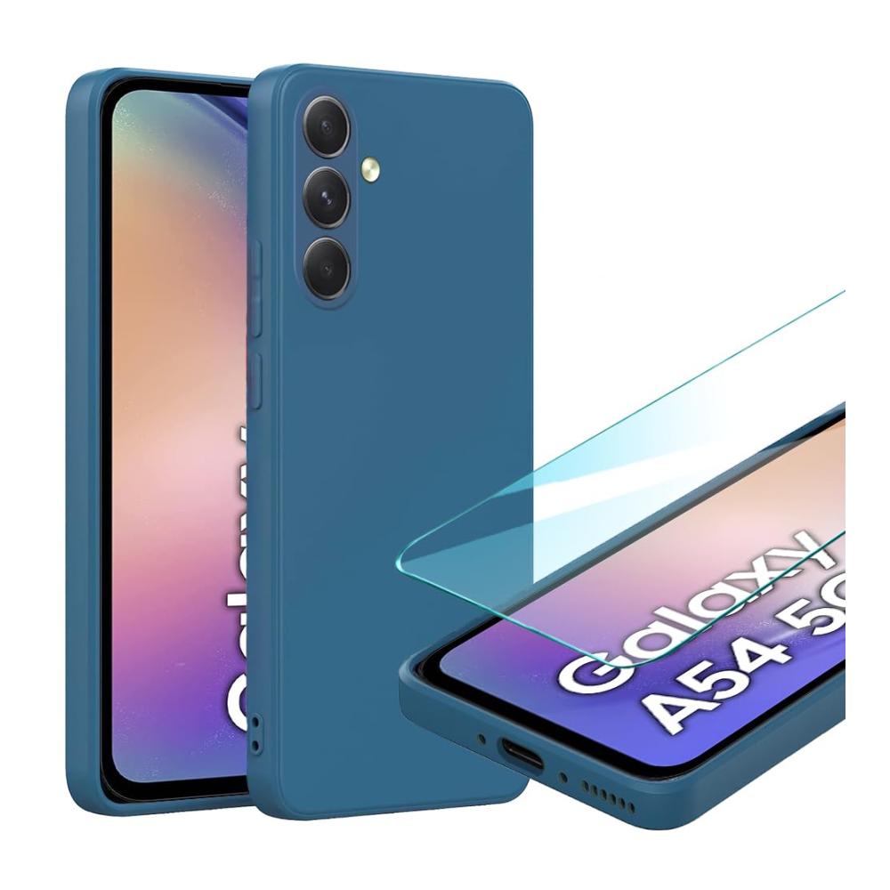 Unsere Hülle für das Samsung Galaxy A54 5G bietet einen zuverlässigen Schutz in Standardqualität. Das Set enthält eine weiche TPU-Silikonhülle in Blau sowie eine passgenaue Glas Schutzfolie.