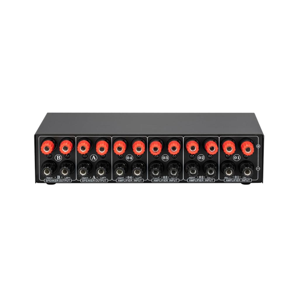 4 in 2 out Verstärker Passiver Schalter Wahlschalter Lautsprecher Splitter Stereo Umschalter Box Wahlschalter Lautsprecherschalter WahlboxMerkmale:brandneu und4 Leistungsverstärker, Druckknopf Auswahlschalter Eingang, 2 Sätze Stereolautsprecher. Druckknopf Auswahlschalter Ausgang (2 Lautsprechersätze können unabhängig voneinander geöffnet oder geschlossen werden).Stereolautsprechersätze können gleichzeitig erklingen. Sie können auch eine oder mehrere Lautsprechergruppen einzeln ausschalten, indem Sie den Druckknopfschalter manuell auswählen.Die Leistung jedes Kanals beträgt 300 WDer Eingang bietet eine Leerlaufschutzfunktion für den Vakuumröhren Leistungsverstärker.Manuelle Auswahl der Eingangs und Ausgangsumschaltung, gerader Stecker, gerade Verwendung, Schaltstabilität, zwischen den Kanälen erzeugt kein weiteres Trockenschließen oder Geräusch.Kompaktes Design mit massivem Metallgehäuse, einfache Installation, Produkt benötigt keine externe Stromversorgung.Einfache Installation: Ein und Ausgang Plug and Play, einfache Installation, Sie können unterschiedliche Erfahrungen genießen.Spezifikationen:Kompatibel mit allen Arten von Leistungsverstärkern und LautsprechernDer Eingang/Ausgang akzeptiert robuste Lautsprecherkabel oder Lautsprecherstiftkabel über den AnschlussVerbinden Sie den Leistungsverstärker mit Verstärker 1-2-3-4Schließen Sie den Lautsprecher jeweils an Position A und B anSchalten Sie Ihr Verstärker Stereogerät ein und Produkt benötigt keine externe StromversorgungEingang: 4 Eingangssätze (Bananenstecker)Ausgang: 2 Ausgangssätze (Bananenstecker)Leistung: bis zu 300 WMetallmaterial, feines Stahlgehäuse, kompakte Größe, passend für jedes SystemKanalleistung: Jeder Kanal unterstützt bis zu 300 W LeistungFrequenzgang: 10Hz-50KHzProduktgröße: 240 x 105 x 55 mm/9,45 x 4,13 x 2,17 ZollPaket beinhaltet:1Set x Wahlschalte