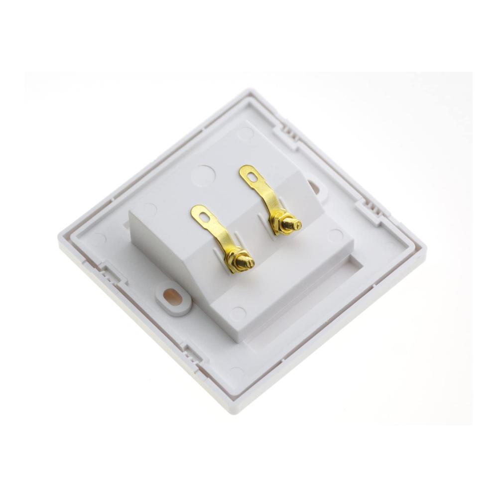 Die FamilyMall(TM) Wanddose bietet bequeme und zuverlässige Anschlüsse für Ihre Lautsprecher. Mit zwei Gold-Buchsen für Bananenstecker ermöglicht sie eine direkte Verbindung oder den Anschluss an Ihre Lautsprecher für ein optimales Klangerlebnis. Die Anschlussdose ist sowohl an der Vorder- als auch an der Rückseite identisch und gewährleistet eine einfache Installation. Erleben Sie erstklassige Soundqualität mit dieser langlebigen Wandhalterung.