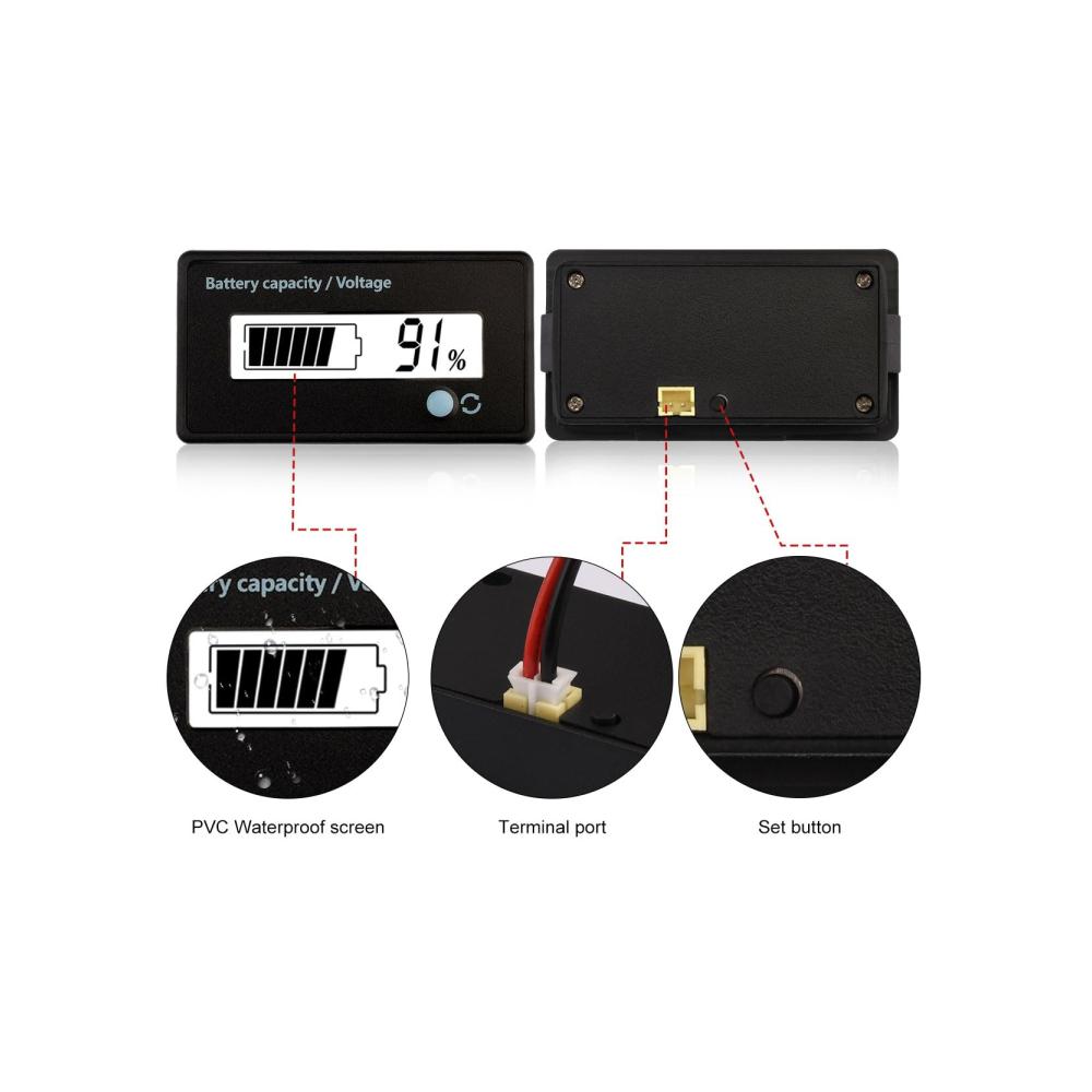 【3 in 1 Batteriespannungsmesser 】Mit einer geschalteten Funktionstaste, um die Batteriekapazität, die Echtzeitspannung oder das Ausschalten zu wählen; Ton- und Blitzalarmfunktion, wenn die Batteriekapazität unter 20% liegt, wird die Bildschirmanzeige Ton und Licht zum Alarm machen.