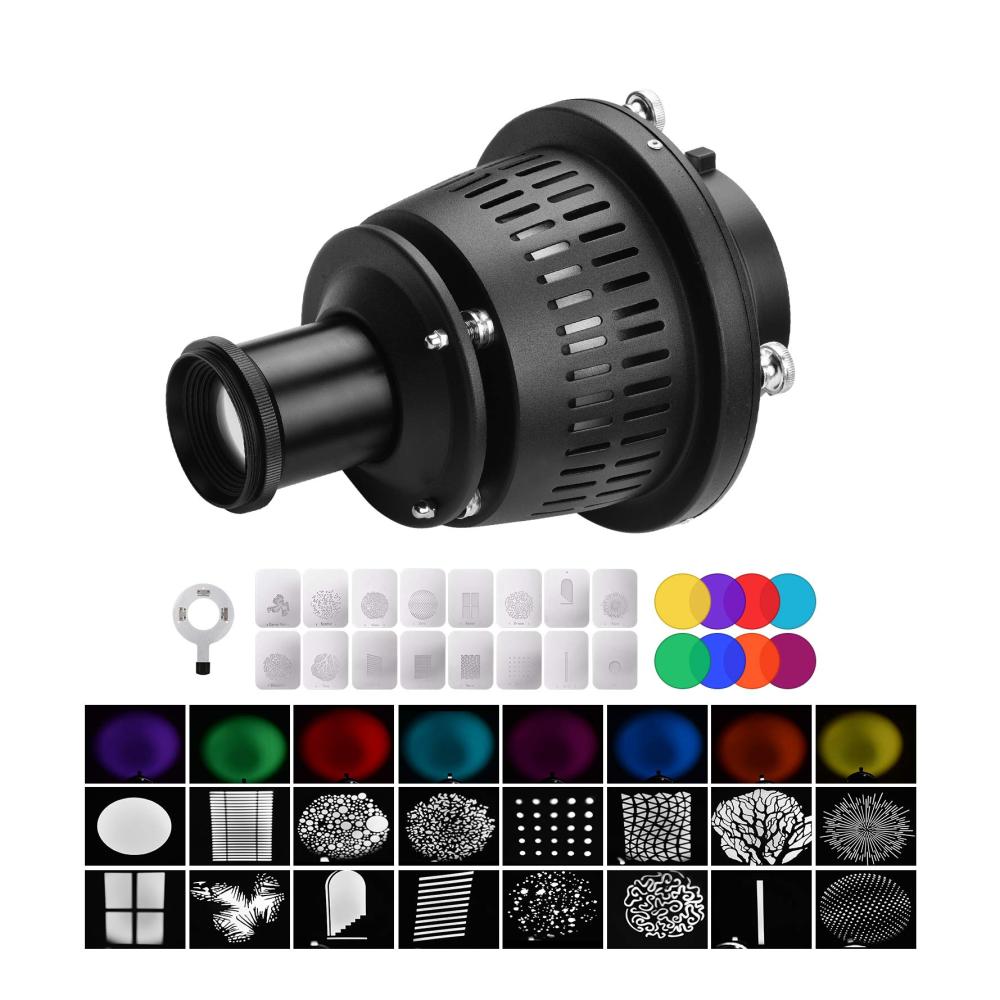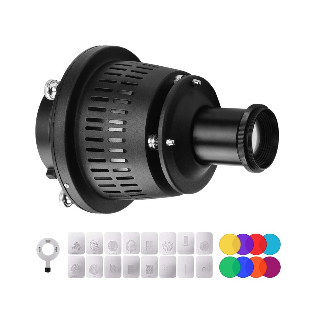 • Manuelle Blendeneinstellung: Einstellbarer Fokusring-Design, Sie können die Projektion der Grafikkarten von Spot zu breit erhalten, indem Sie die Blendengröße manuell ändern, was eine reichere Quelle für die kreative Fotografie bietet.