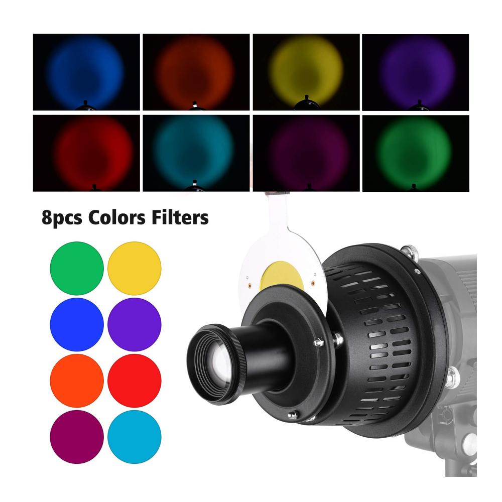 • 8 x Farbfilter: 8 x Gelfilter in verschiedenen Farben (rot/orange/gelb/grün/cyan/blau/violett/rot-violett) können verschiedene bunte Lichteffekte bei verschiedenen Farbtemperaturen erzeugen und Ihren Aufnahmen eine künstlerische Atmosphäre verleihen.