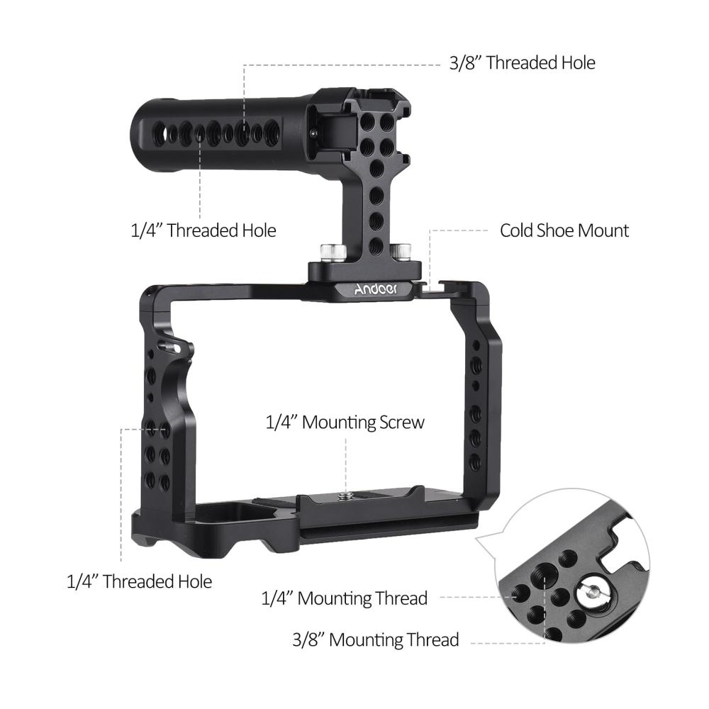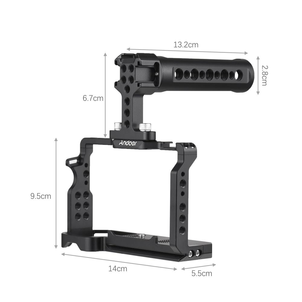 Optimieren Sie Ihre Kameramontage mit diesem hochwertigen Tragegriff aus Aluminiumlegierung. Ausgestattet mit praktischen Kaltschuh-Halterungen und einer Vielzahl von 1/4-Zoll-Gewinden, bietet dieser Griff eine stabile Unterstützung für Ihre A7C-Kamera.