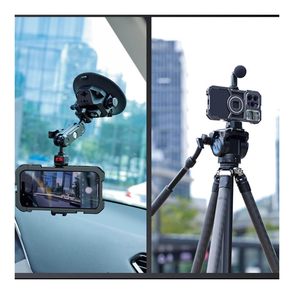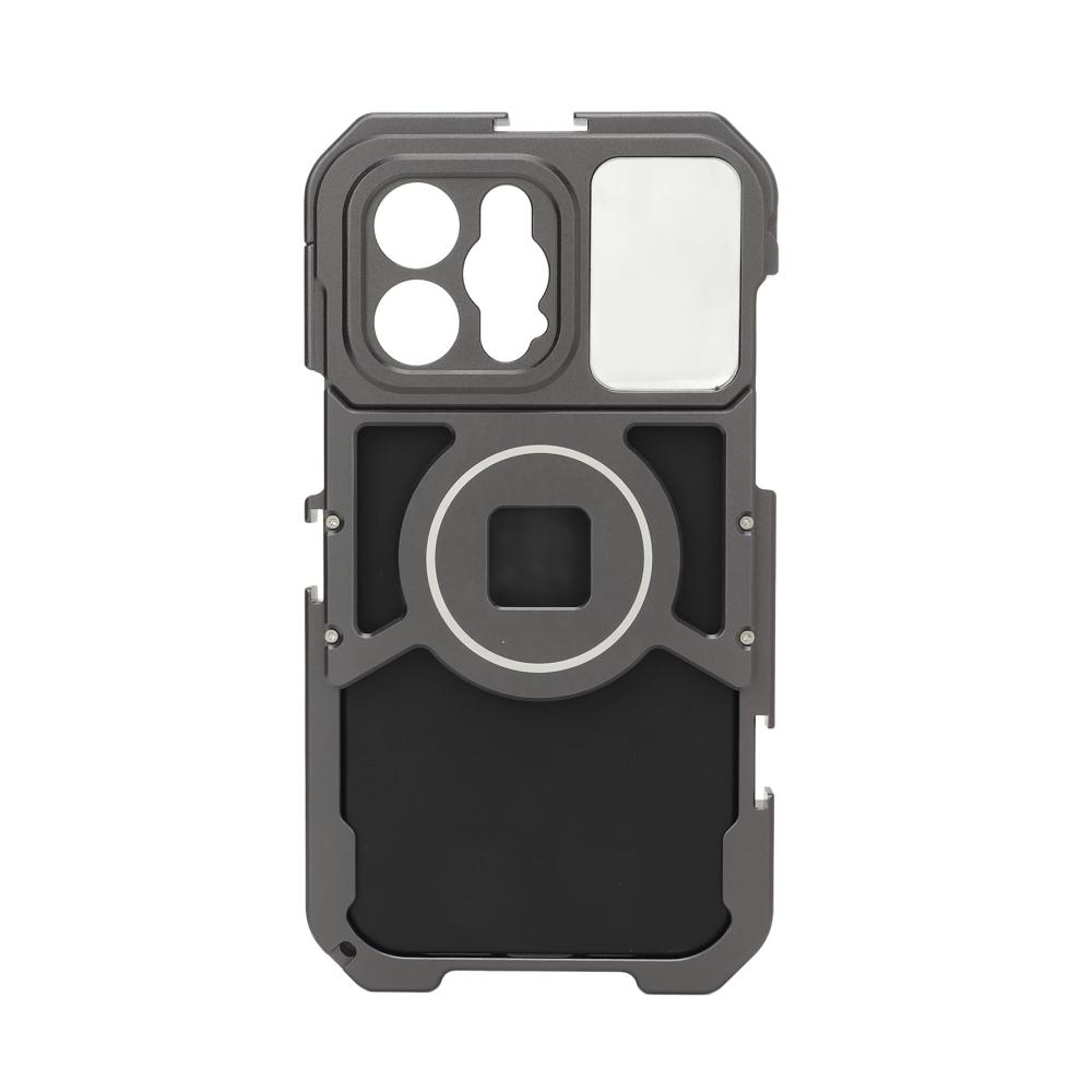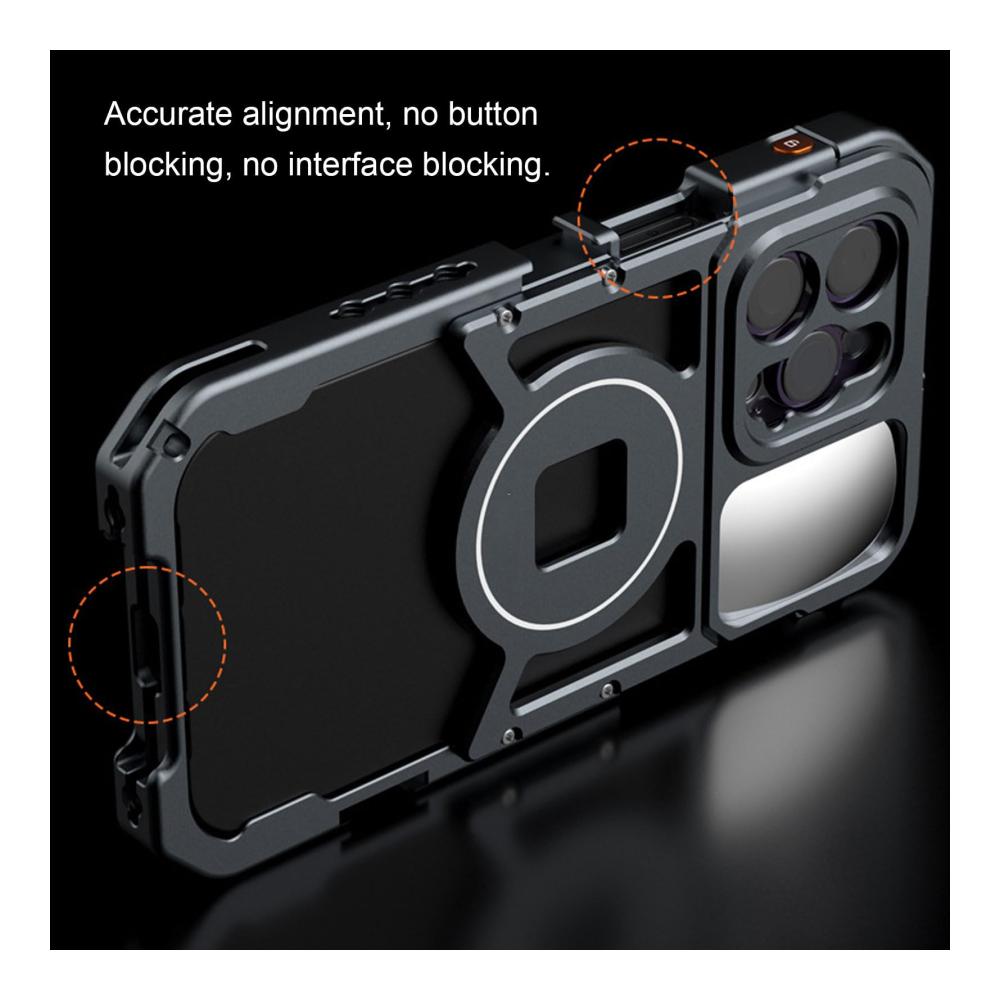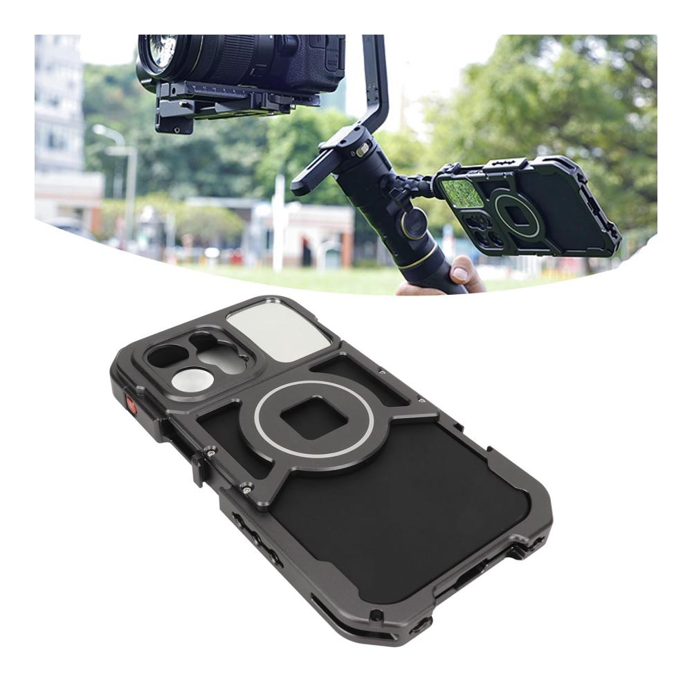 Unser Aluminium-Handykäfig für IOS 14 Pro Max ist speziell entwickelt worden, um Ihren Ansprüchen gerecht zu werden. Der Käfig verfügt über einen CLAW-Schnelltrennanschluss für maximale Kompatibilität mit einer Vielzahl von Zubehör. Mit mehreren 1/4-Zoll-Gewindelöchern und einer Kaltschuhhalterung bietet er Platz für verschiedene Zusatzgeräte wie Fülllichter und Mikrofone. Dank des Klappverschlussmechanismus ist eine schnelle und sichere Installation gewährleistet. Der ultradünne Metallrahmen aus Aluminiumlegierung bietet umfassenden Schutz und professionelle Qualität für Ihre mobile Fotografie. Ein Muss für jeden Outdoor-Videodreh