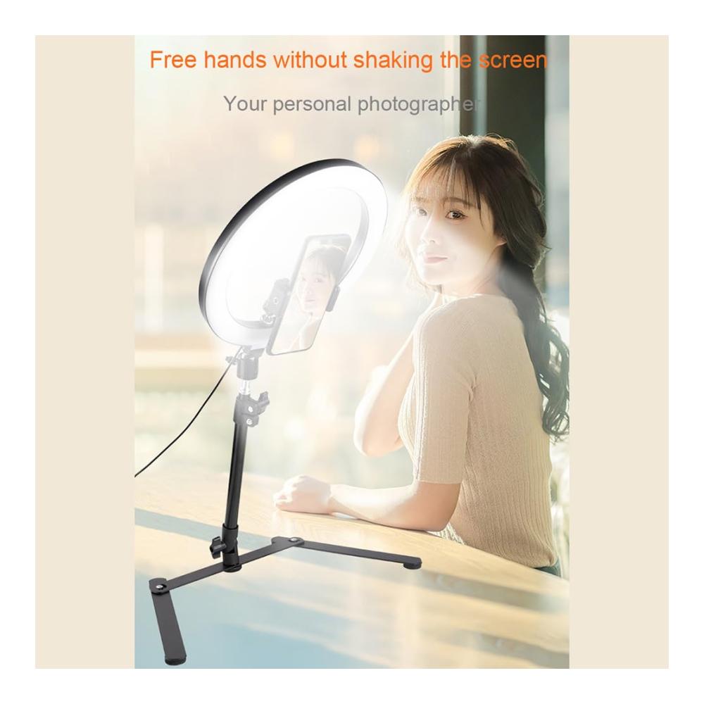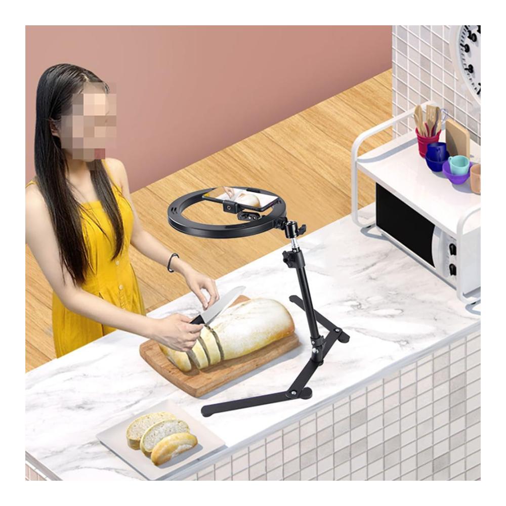 Professionelles 12-Zoll-LED-Ringlicht mit Stand und Telefonhalterung für Blitzgeräte | Tischstativ-Overhead-Kamerahalterung für Live-Streams, Videoaufzeichnungen, Porträts und Make-up