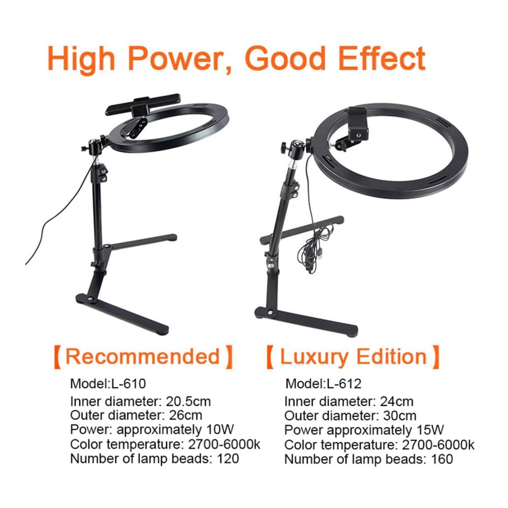 Professionelles 12-Zoll-LED-Ringlicht mit Stand und Telefonhalterung für Blitzgeräte | Tischstativ-Overhead-Kamerahalterung für Live-Streams Videoaufzeichnungen Porträts und Make-up