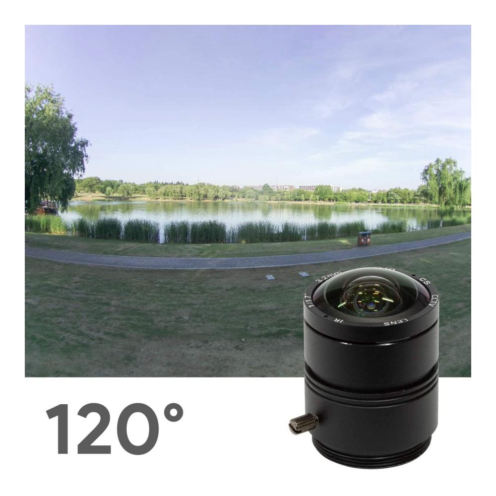 Ultraweitwinkel – Im Vergleich zu einem 6-mm-Objektiv mit einem 65-Grad-HFOV, der als Weitwinkel ist, bietet dieses Objektiv bei der IMX477 HQ-Kamera ein horizontales Sichtfeld von 120 Grad.