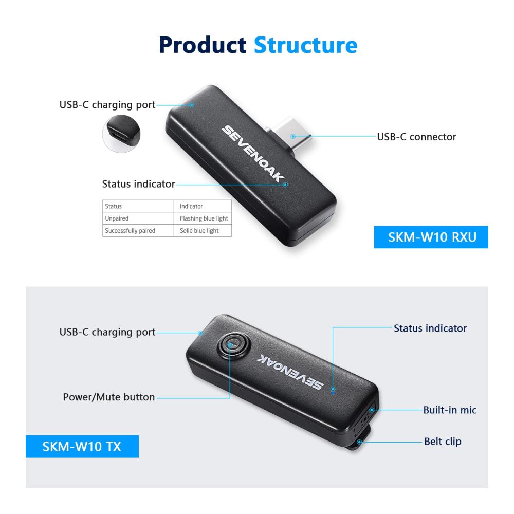 ▶【24 Months Warranty】: Sevenoak always provides professional products and perfect service. If the product fails, please contact us and we will provide you with a complete after-sales solution. Please feel free to contact us if you have any questions about the SKW-W10 clip microphone.