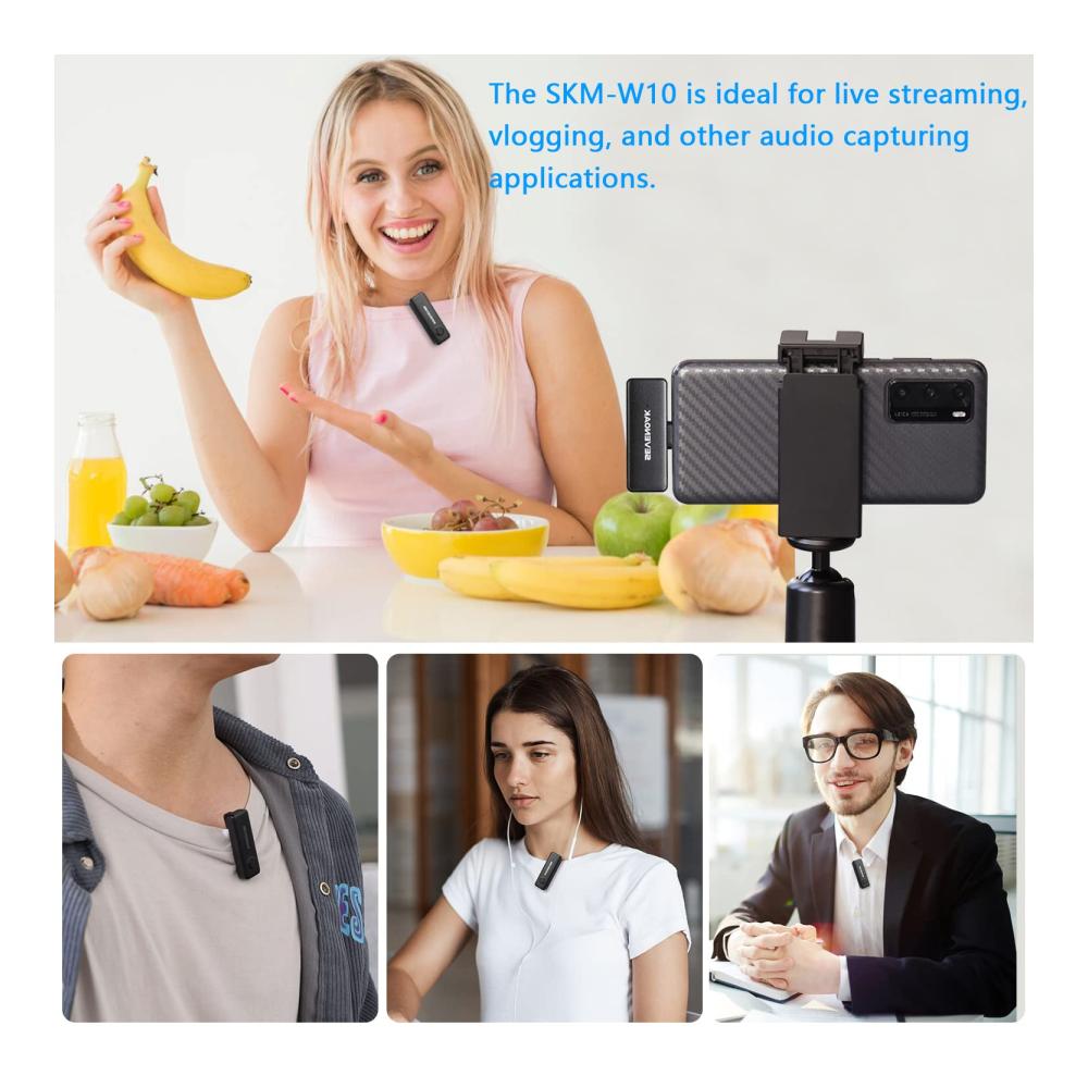 Das SKM-W10 Wireless Lavalier Mikrofon ist ein ultrakompaktes 2,4 GHz drahtloses Mikrofonsystem, das mit mobilen Geräten kompatibel ist. Mit Geräuschunterdrückung, Aufladen des Telefons während der Nutzung und automatischer Kopplung.