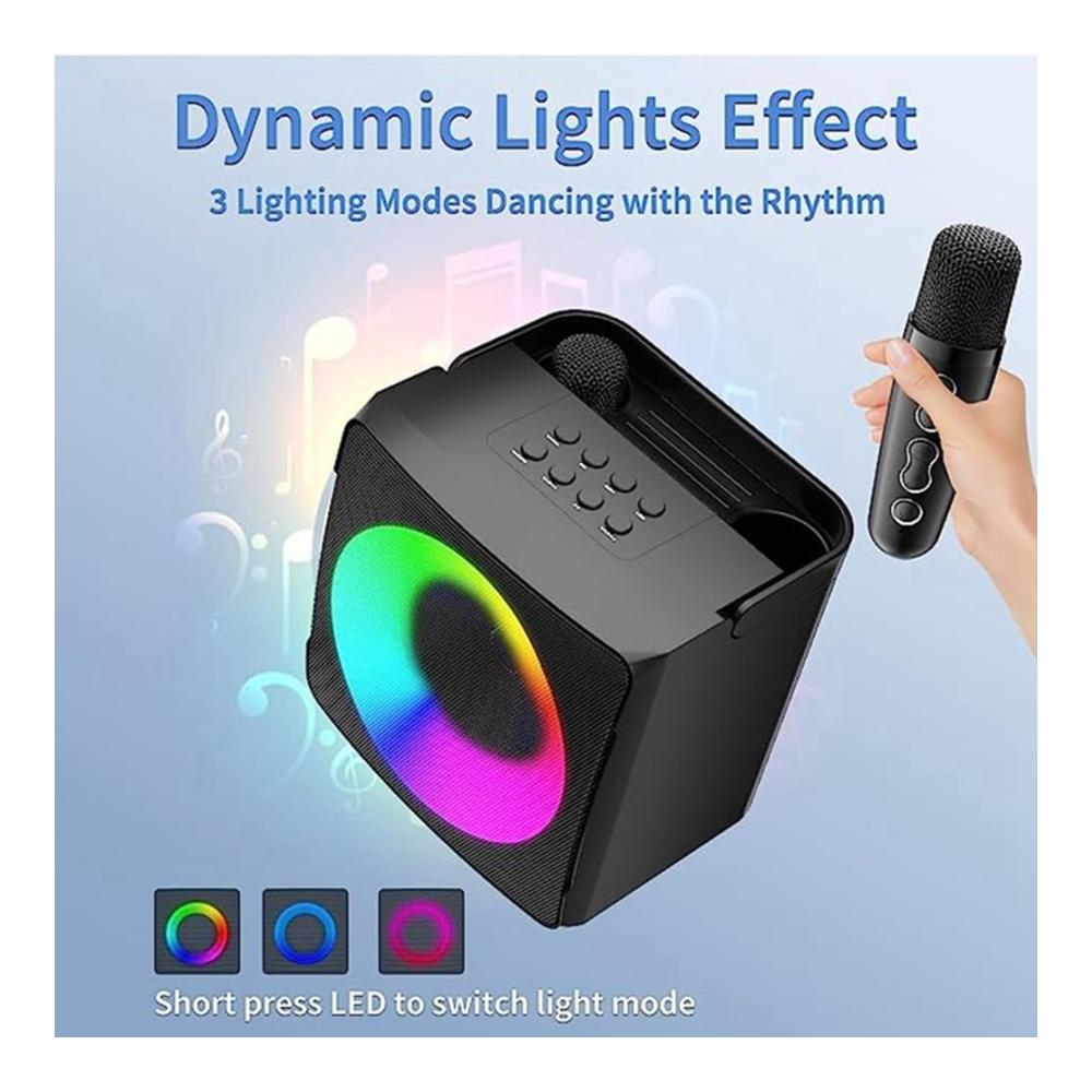 [Dynamisches LED-Licht] Dieser kabellose Karaoke-Lautsprecher verfügt über 3 Lichtmodi. Es kann sich mit dem Rhythmus der Musik ändern und so die romantischste Karaoke-Party-Umgebung für Sie schaffen. Alternativ können Sie auch lange auf die LED-Taste drücken, um das Licht auszuschalten.