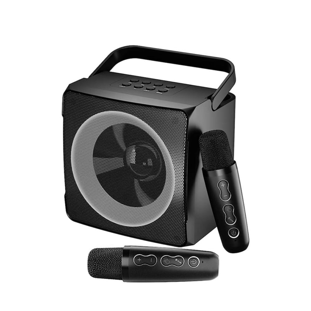 Entdecken Sie das Duale Kabellose Mikrofon und den tragbaren Karaoke-Bluetooth-Lautsprecher von Desikixudy in elegantem Schwarz. Dieses Set bietet Ihnen alles, was Sie für ultimativen Karaoke-Spaß im Freien benötigen. Mit Metall- und ABS-Konstruktion ist es robust und langlebig. Das Paket enthält einen Lautsprecher, zwei Mikrofone, ein Ladekabel und ein Benutzerhandbuch für einfache Einrichtung und Nutzung.