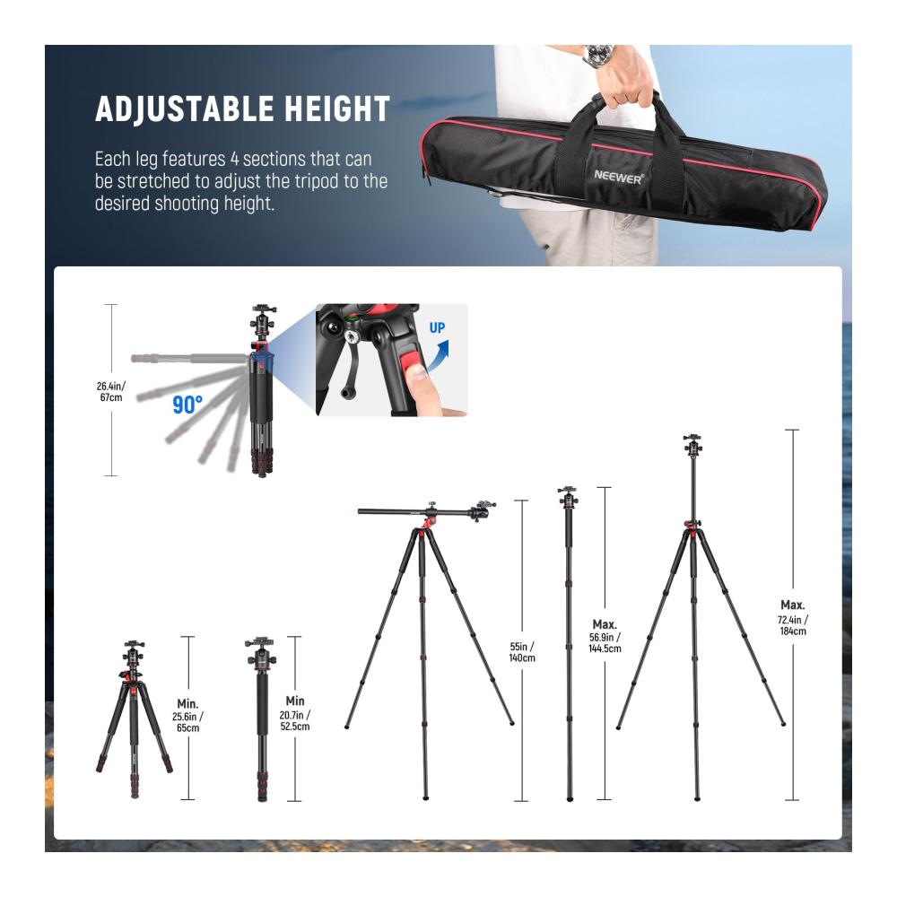 - Maximale Stativhöhe: 184 cm (72,4 Zoll)