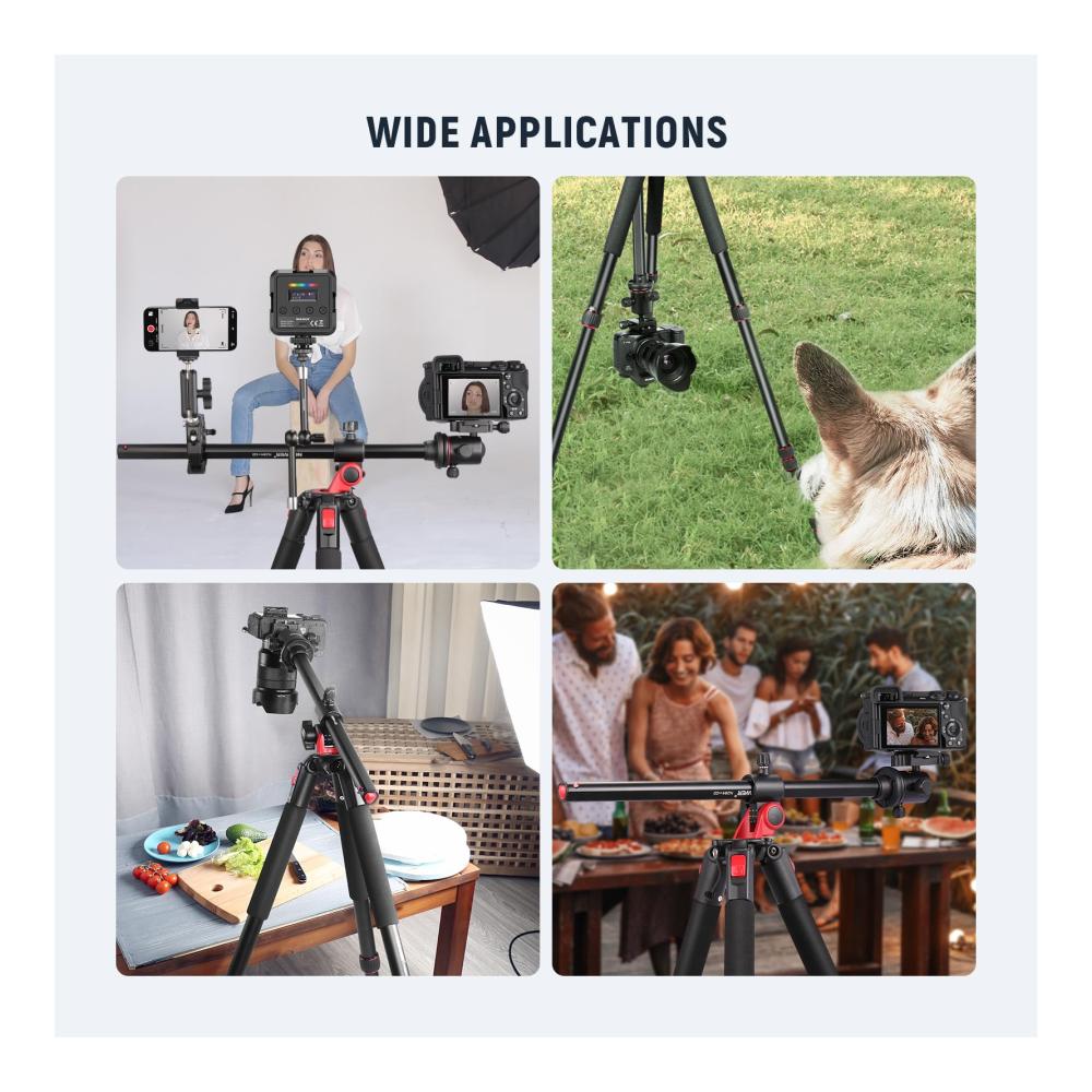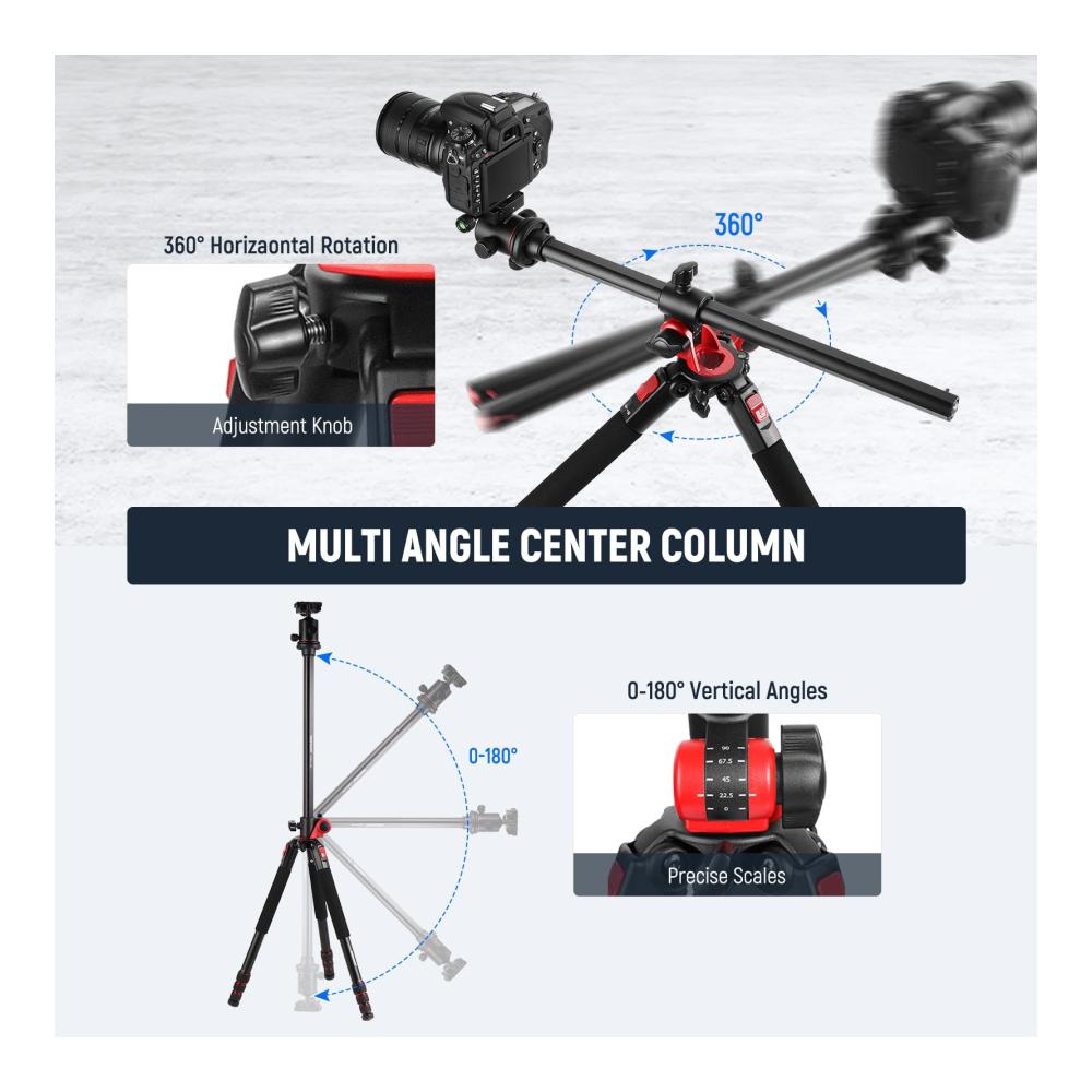 73,6″ Horizontal Stativ Multi Winkel Mittelsäule | Kugelkopf mit vierseitigem Arca Schnellwechselplatten Schlitz | Mini Schnellwechselplatte und Arca Basis Set | Nivelliersockel (Φ55mm) Aluminium | Superklemme mit 3″ Dual Kugelkopf Magischer Arm c | 63″ Reisestativ aus Kohlefaser | |