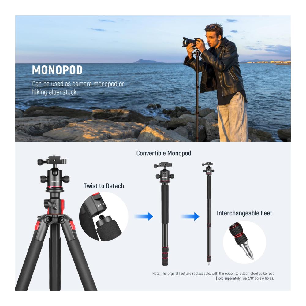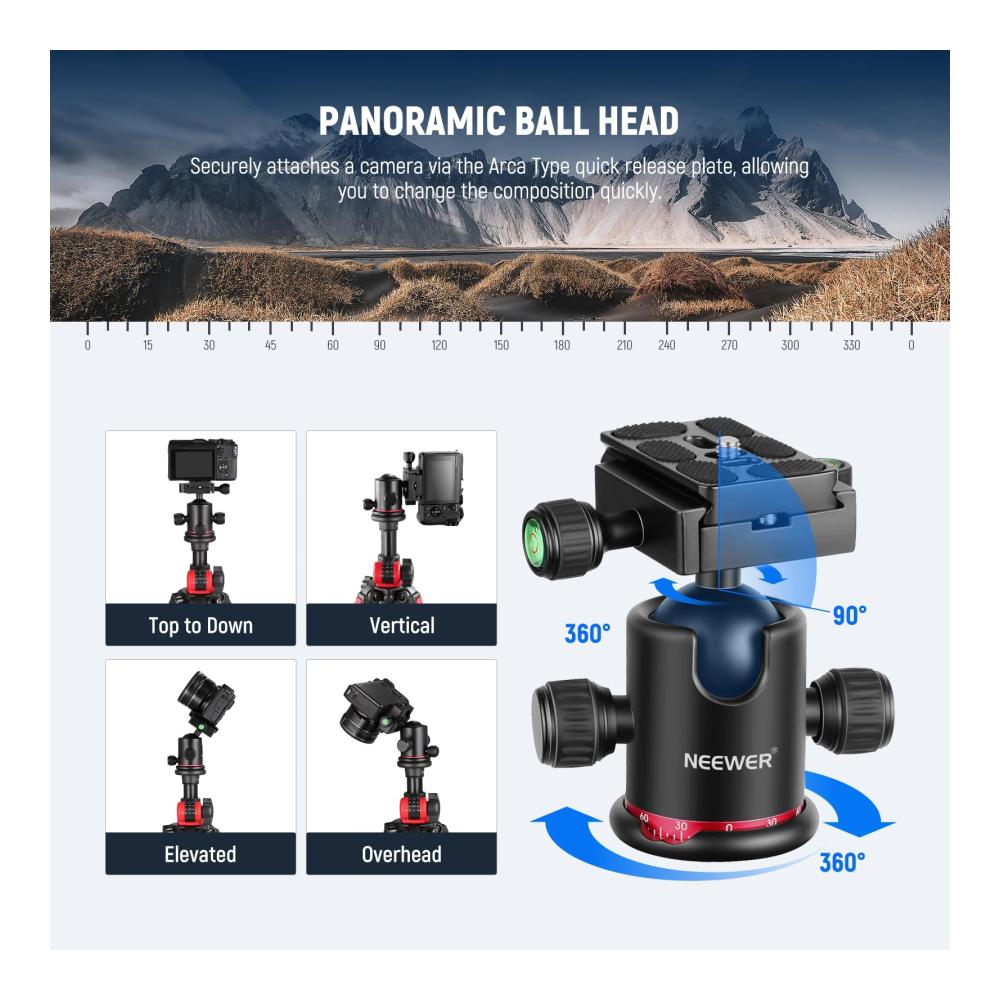 Neewer Kamerastativ mit 360 Grad drehbarer Mittelsäule und Kugelkopf, QR-Platte