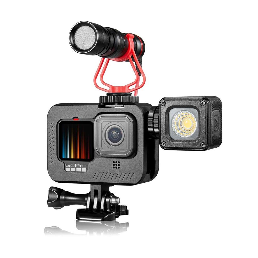 Diese Vlog Schutzhülle aus Aluminiumlegierung ist die perfekte Ergänzung für Ihre GoPro Hero 9. Mit 2 Zubehörschuh-Halterungen können Sie problemlos Mikrofone und Leuchten anbringen. Die robuste Konstruktion schützt Ihre Kamera zuverlässig vor Beschädigungen. Dank der schwarzen Farbe passt sie perfekt zu Ihrer Ausrüstung.