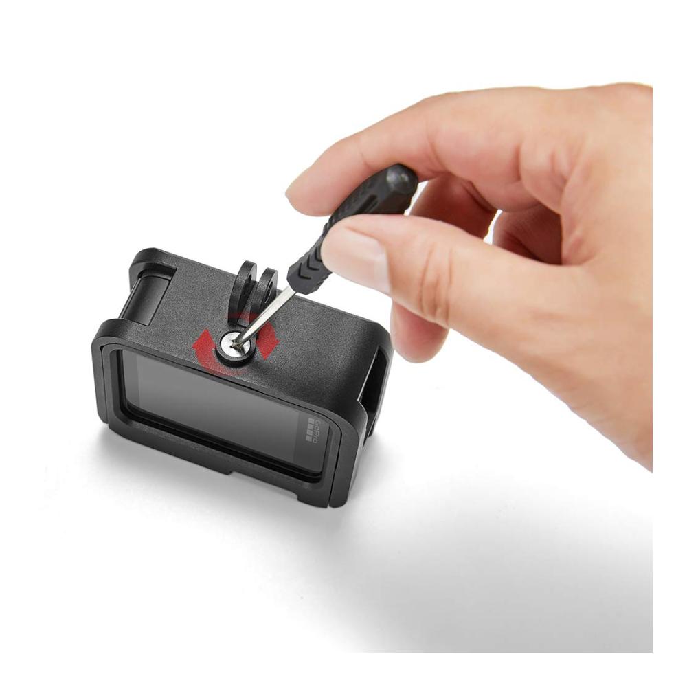 Die Hintertür mit Schiebeabdeckung macht die Installation bequemer und schneller. An der Unterseite des Käfigs befindet sich eine Schraube. Wenn Sie die Kamera einlegen, können Sie einen Schraubendreher verwenden, um die Schraube festzuziehen, um die GoPro 9 Action-Kamera zu befestigen. Selbst wenn Sie es heftig schütteln, wird die Kamera nicht schütteln.