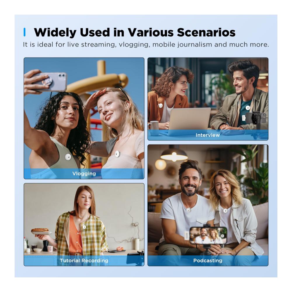 【Magnetischer Clip】Der Rückenclip des drahtlosen Lavalier-Mikrofonsenders wurde zu einem magnetischen Rückenclip aufgerüstet. Es ist bequemer zu demontieren, einfacher an der Kleidung zu befestigen, stabil und wird nicht abfallen.