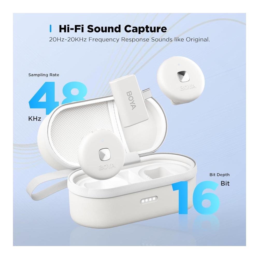 【Rauschunterdrückung】BOYA Omic-U verfügt über Stummschaltungs- und Rauschunterdrückungsfunktionen. Doppelklicken Sie auf Rauschunterdrückung, um Umgebungsgeräusche deutlich zu reduzieren. Bietet 48kHz High-Definition-Soundqualität und reduziert die Nachbearbeitungsarbeit.