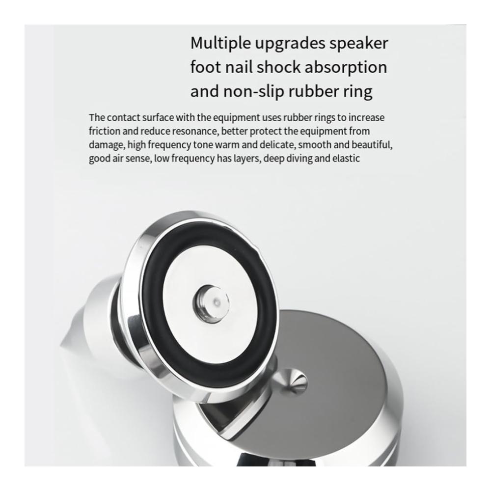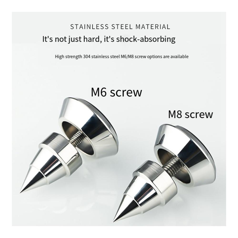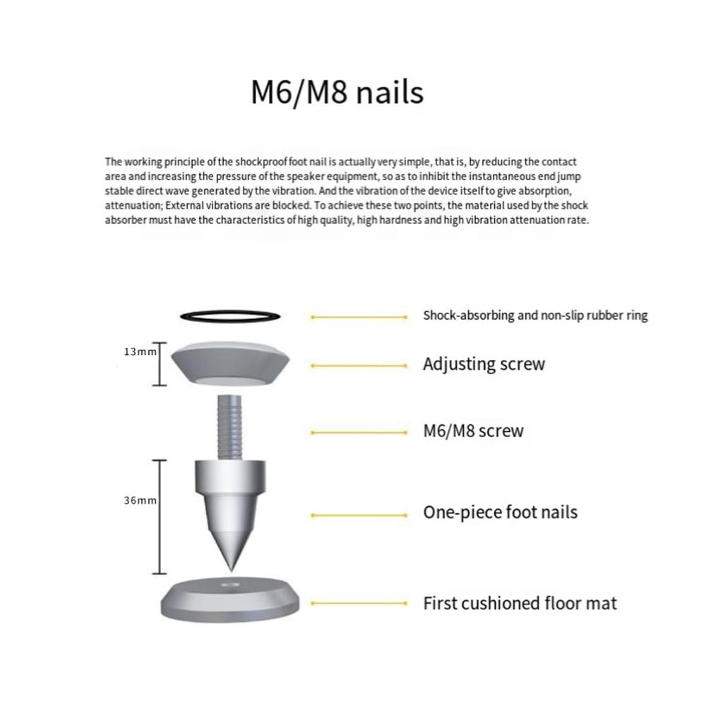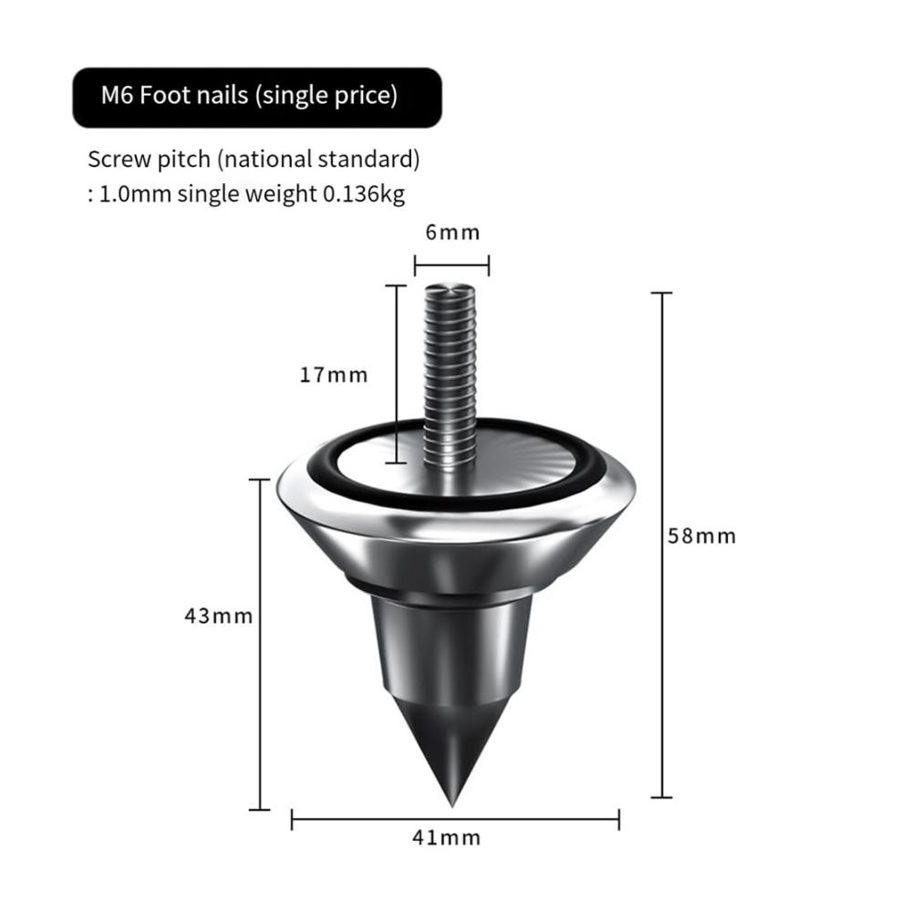 Unsere hochwertigen Fußkegelfüße sind die perfekte Ergänzung für Ihren HiFi-Audio-Lautsprecherverstärker. Hergestellt aus langlebigem Edelstahl und in Silber erhältlich, bieten sie eine einfache Installation und eine zuverlässige Leistung. Das Set enthält 1 Stück M6 Fußnagel für zusätzliche Stabilität. Bitte beachten Sie, dass aufgrund von Lichtreflexionen und Bildschirmeinstellungen die Farben leicht vom Bild abweichen können. Der erlaubte Messfehler beträgt +/- 1-3 cm.
