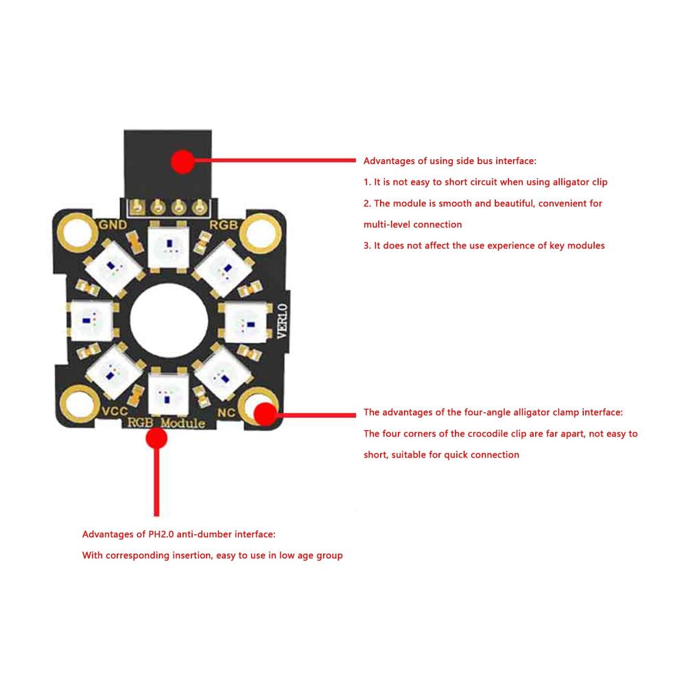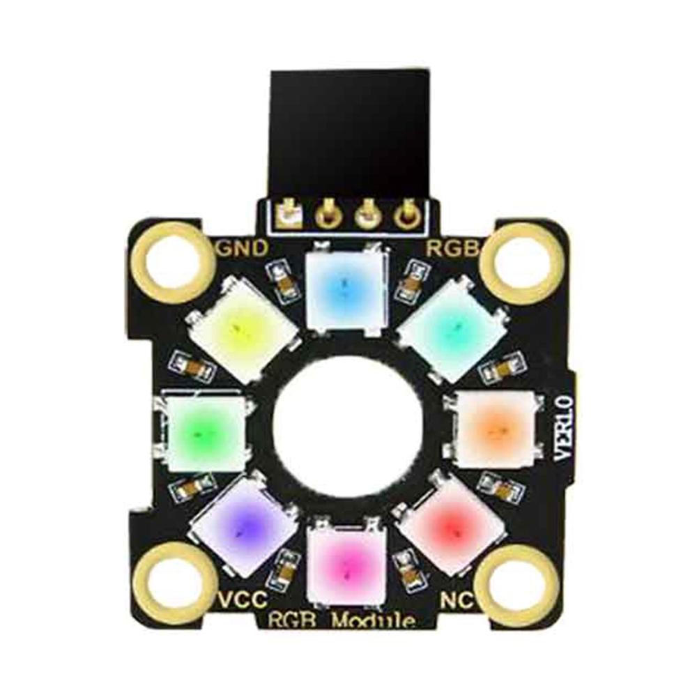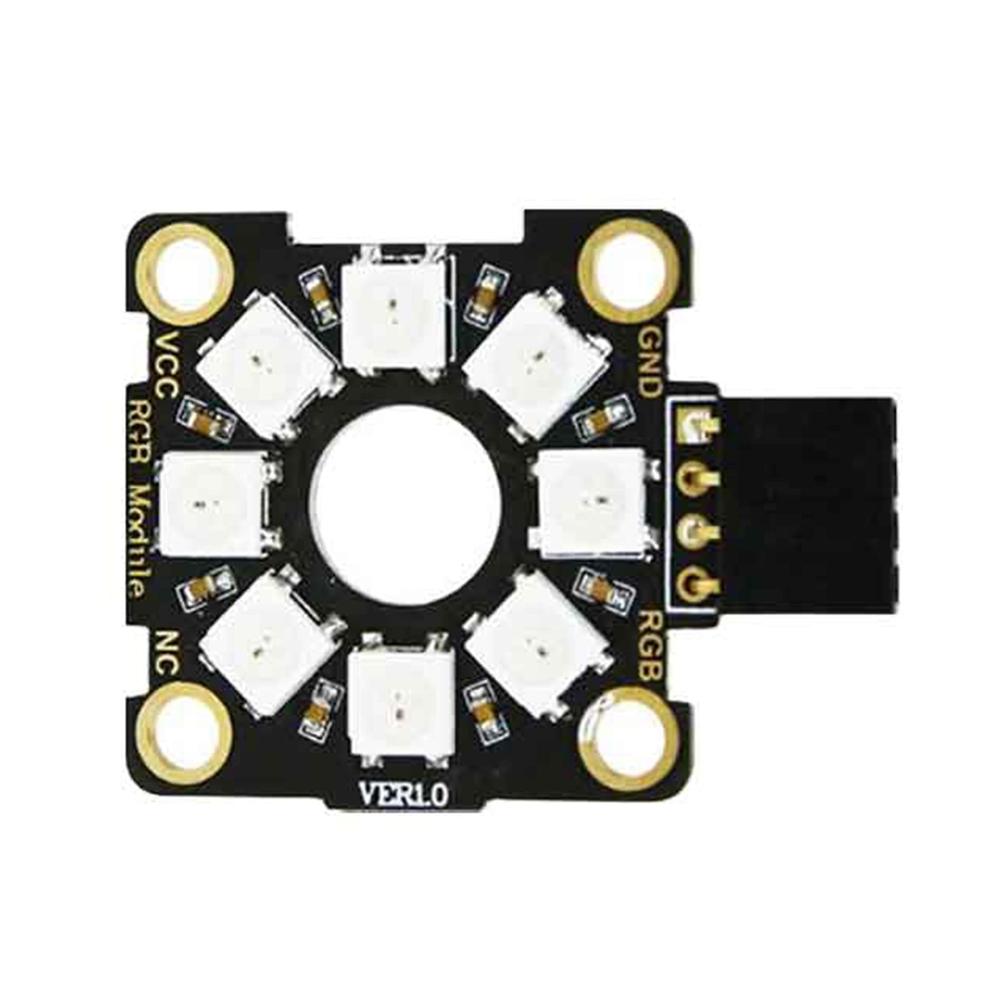 Das Modul besteht aus 8 programmierbaren RGB-Leuchten. RGB-Leuchten sind unabhängig adressierbare Vollfarblichtquellen in Kombination mit integrierten Schaltkreisen und . Farbe von R (Rot), G (Grün) und B (Blau) ist in 256 High-Level-Helligkeit unterteilt, mit den Eigenschaften geringer Größe, hoher Helligkeit, programmierbarer, farbenfroher Beleuchtung usw Lichtdekoration, festliche Lichter, Projekt-Anzeigeleuchten und andere Szenen