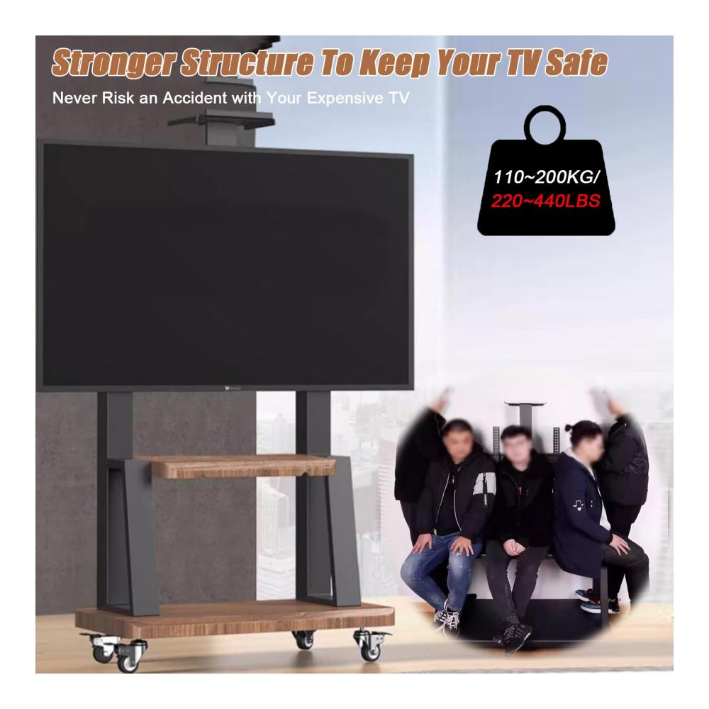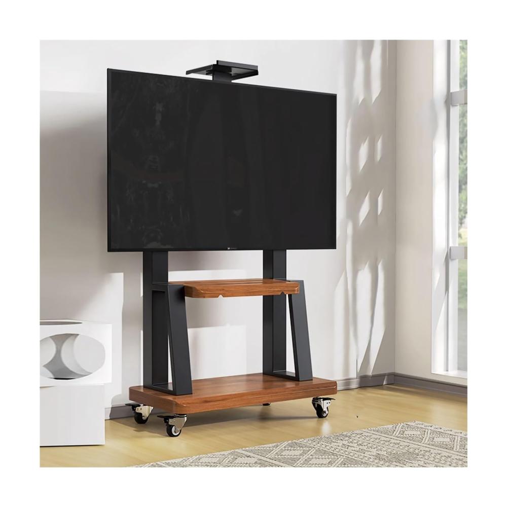 【Stabile Eisenkonstruktion】: Dieser mobile TV-Ständer besteht aus einem robusten Eisenrahmen, der bis zu 150 kg tragen kann. Die markante Doppelsäule und die große Basis aus Massivholz sorgen dafür, dass der TV-Ständer stabil und wackelfrei ist, was die Sicherheit Ihres TV-Geräts gewährleistet.