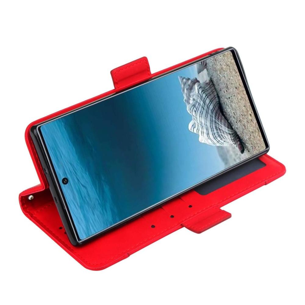Die Brieftasche Stil Hautgefühl Kalb Muster Lederhülle 5G in Rot ist die ideale Ergänzung für Ihr Samsung Galaxy Note10/Note10. Diese Hülle ist nicht nur prägnant im Design, sondern auch funktional, praktisch und tragbar. Sie bietet vollen Zugang zu allen Tasten und Anschlüssen Ihres Prepaid-Handys und schützt es vor Kratzern, Stößen und mehr. Hergestellt aus hochwertigem Material, ist sie langlebig und leicht. Der geeignete Preis macht sie zu einem erschwinglichen Begleiter für Ihren Alltag.