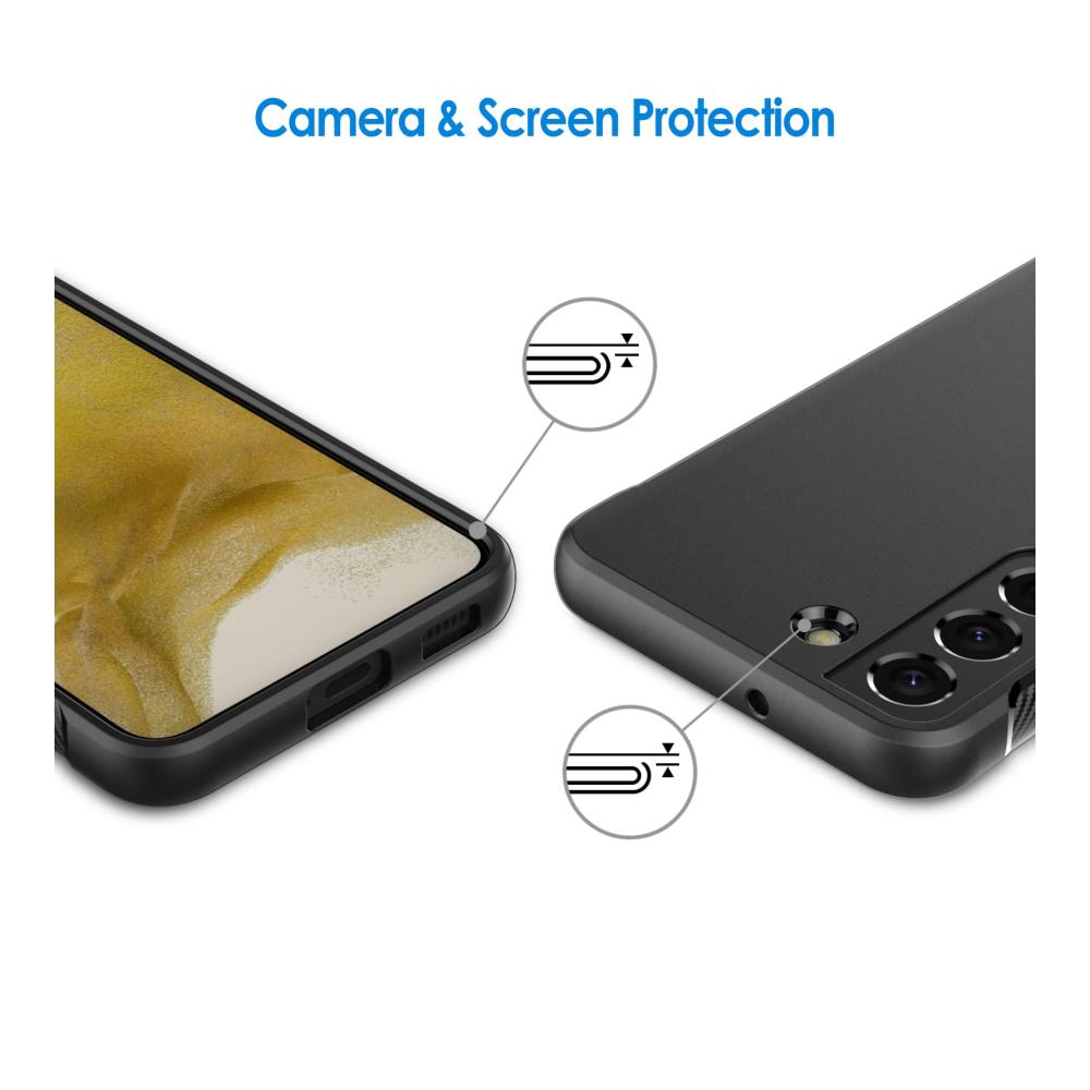Angepasst für Galaxy S22 5G 6,1&34;. Erhöhte Lippen bieten zusätzlichen Schutz für Bildschirm und Kamera. Taktile Tasten sorgen für solides Feedback und einfaches Drücken. Präzise Ausschnitte ermöglichen vollen Zugriff auf Lautsprecher, Kamera und andere Anschlüsse