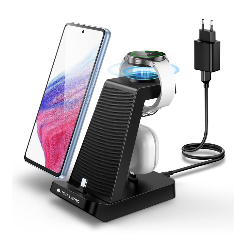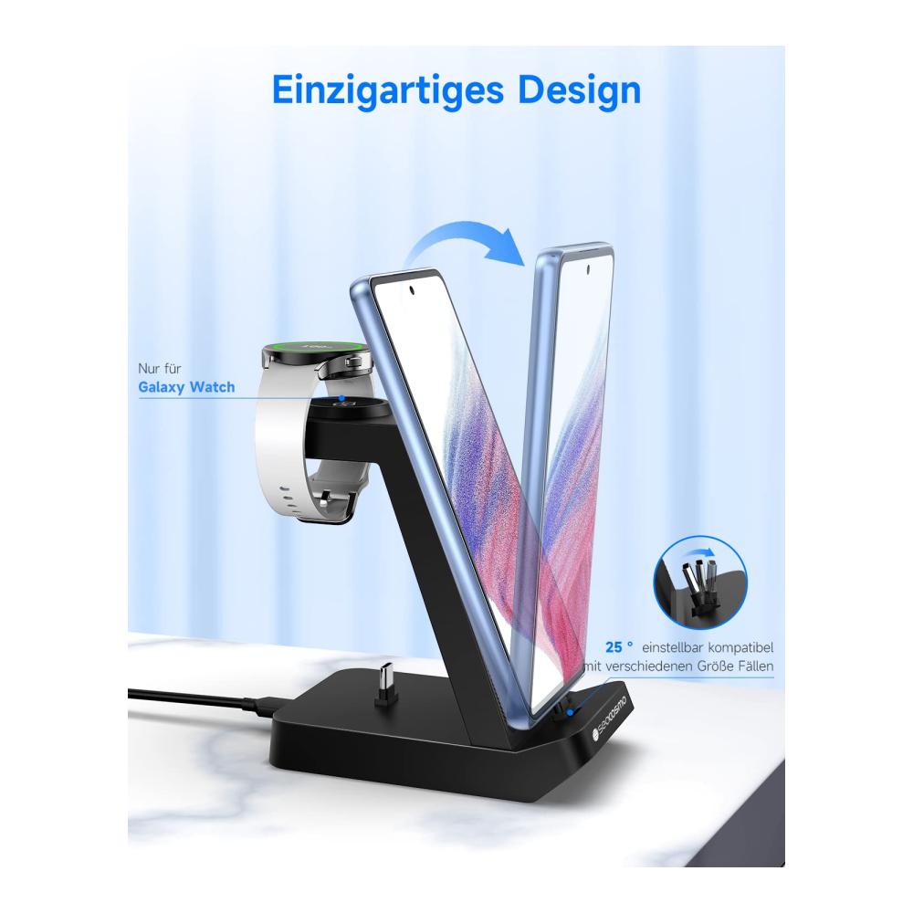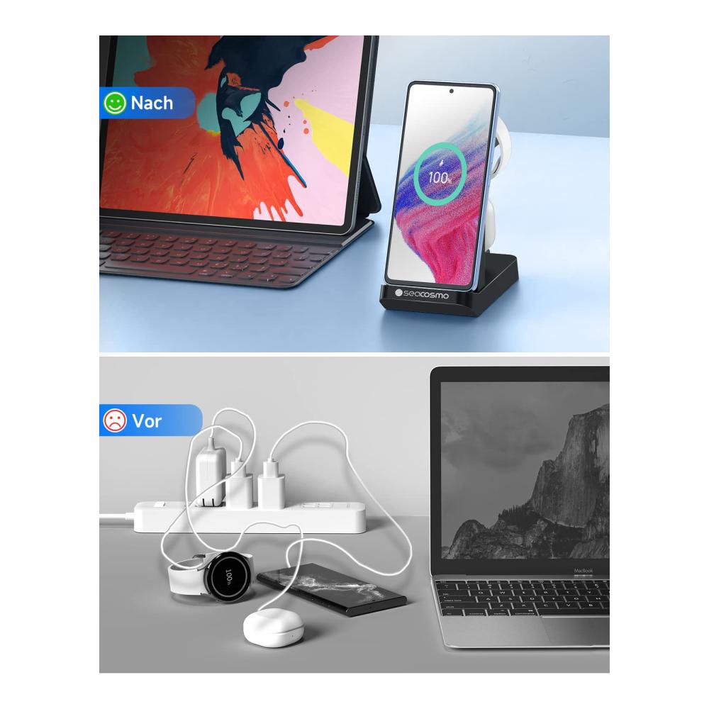 【SIMPLIZIERTES LADEN】Samsung Ladestation 3 in 1 kann Ihre Smartwatch, Telefone und Kopfhörer mit nur einem Kabel aufladen, was Ihren Lebensraum vereinfacht, vermeiden Sie ein Durcheinander von Ladekabeln, macht Ihren Schreibtisch oder Nachttisch aufgeräumt und organisiert. 🎄Daher ist es auch die beste 🎁🎁Wahl als Geschenk für Ihre Freunde und Liebhaber.