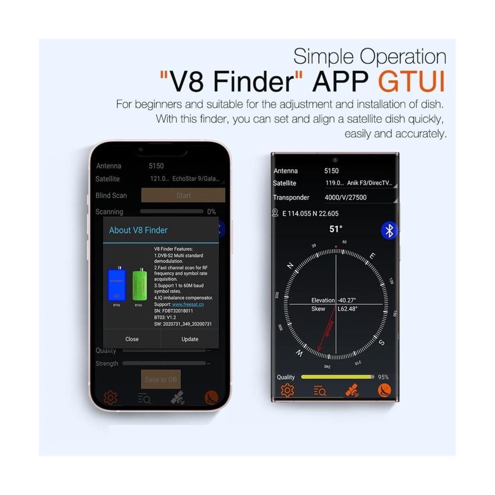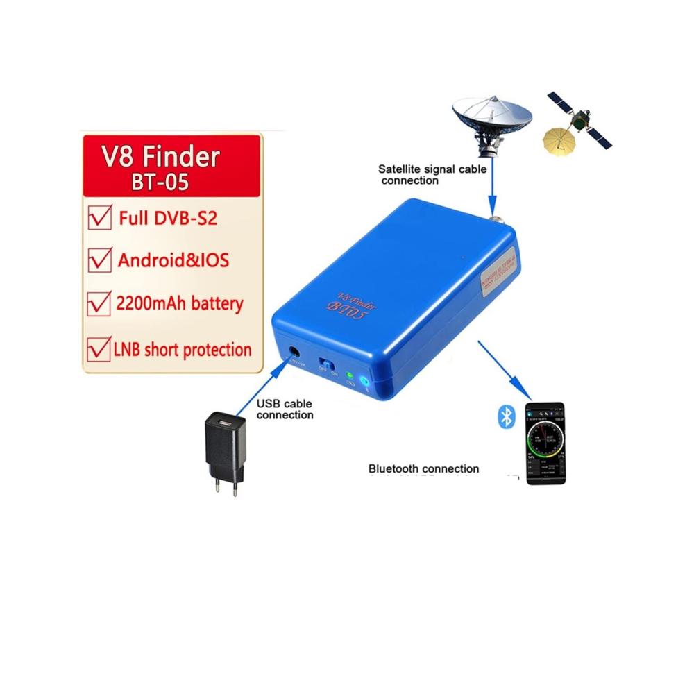 Entdecken Sie das Satellitenfinder-Messgerät V8 Finder BT05 Satfinder DVB S2 Satellitenfinder mit Multi-Standard-Dekodierung für digitale Bluetooth-HD-Satfinder. Dieses hochpräzise Gerät bietet eine Vielzahl von Funktionen, darunter DVB-S2 Multistandard-Demodulation und -Dekodierung, Bluetooth-Verbindung für APP-Steuerung und Unterstützung der vollständigen Satellitenauswahl. Der eingebaute Lithium-Akku mit 2200 mAh sorgt für lang anhaltende Leistung, während Funktionen wie die LNB-Kurzschlussaufforderung und der Überladeschutz für zusätzliche Sicherheit sorgen. Optimieren Sie Ihre Satellitenerfahrung noch heute