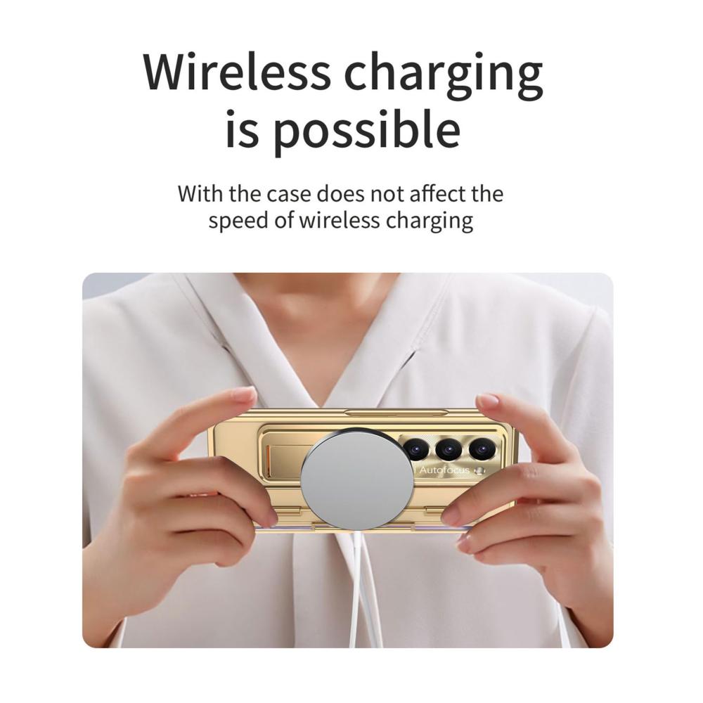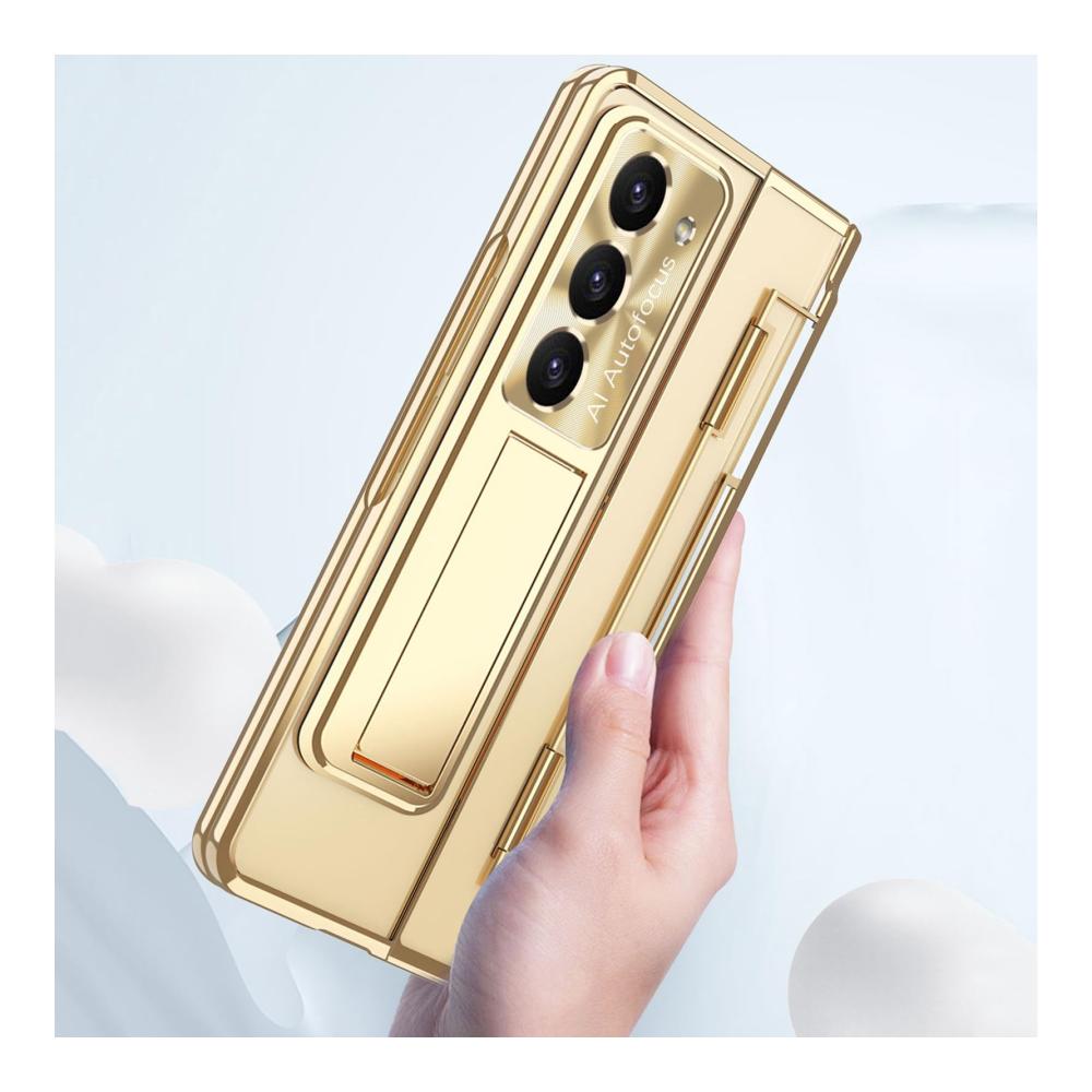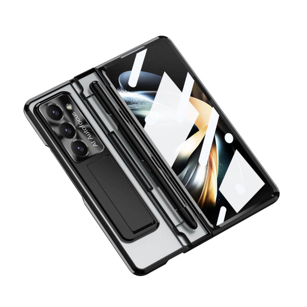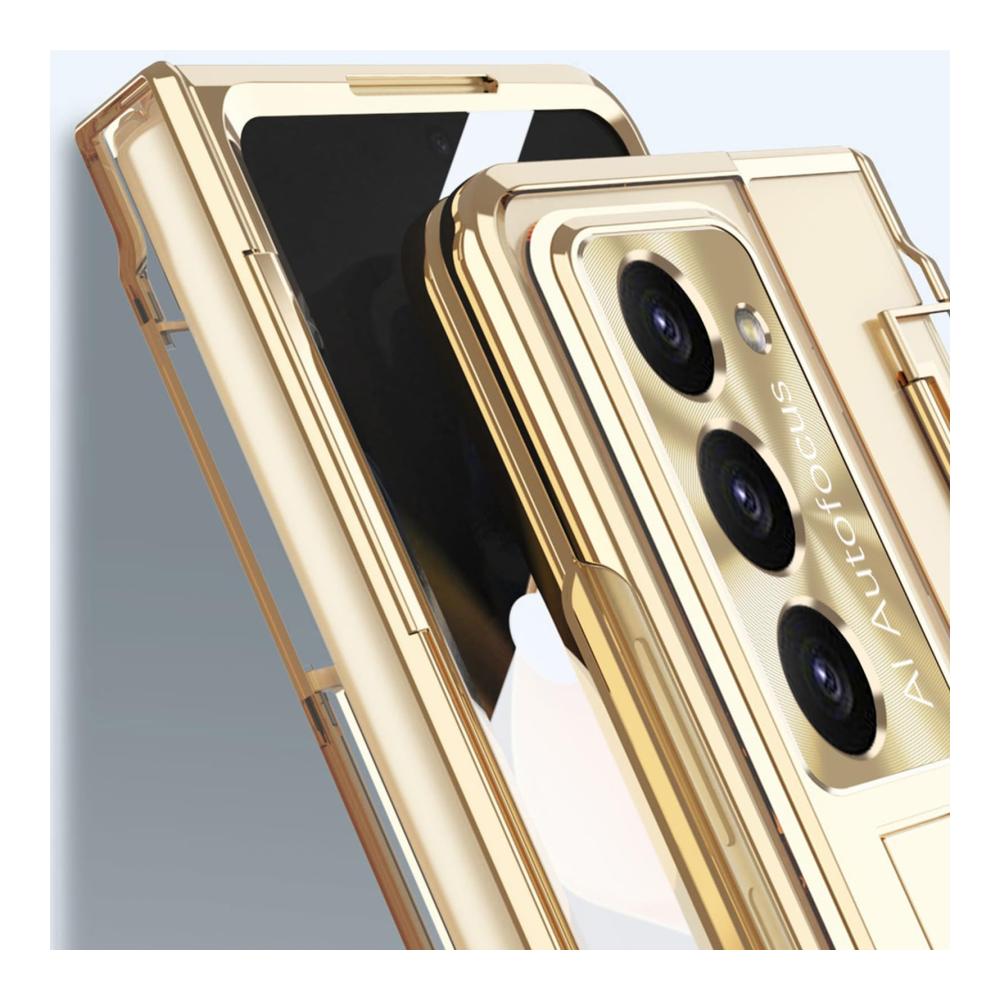- Transparenter Ständer auf der Rückseite: Der transparente Ständer auf der Rückseite ermöglicht es Ihnen, Ihr Samsung Galaxy Z Fold 5 im Querformat aufzustellen, um Videos anzusehen, zu chatten oder Inhalte zu genießen, ohne es in der Hand halten zu müssen.