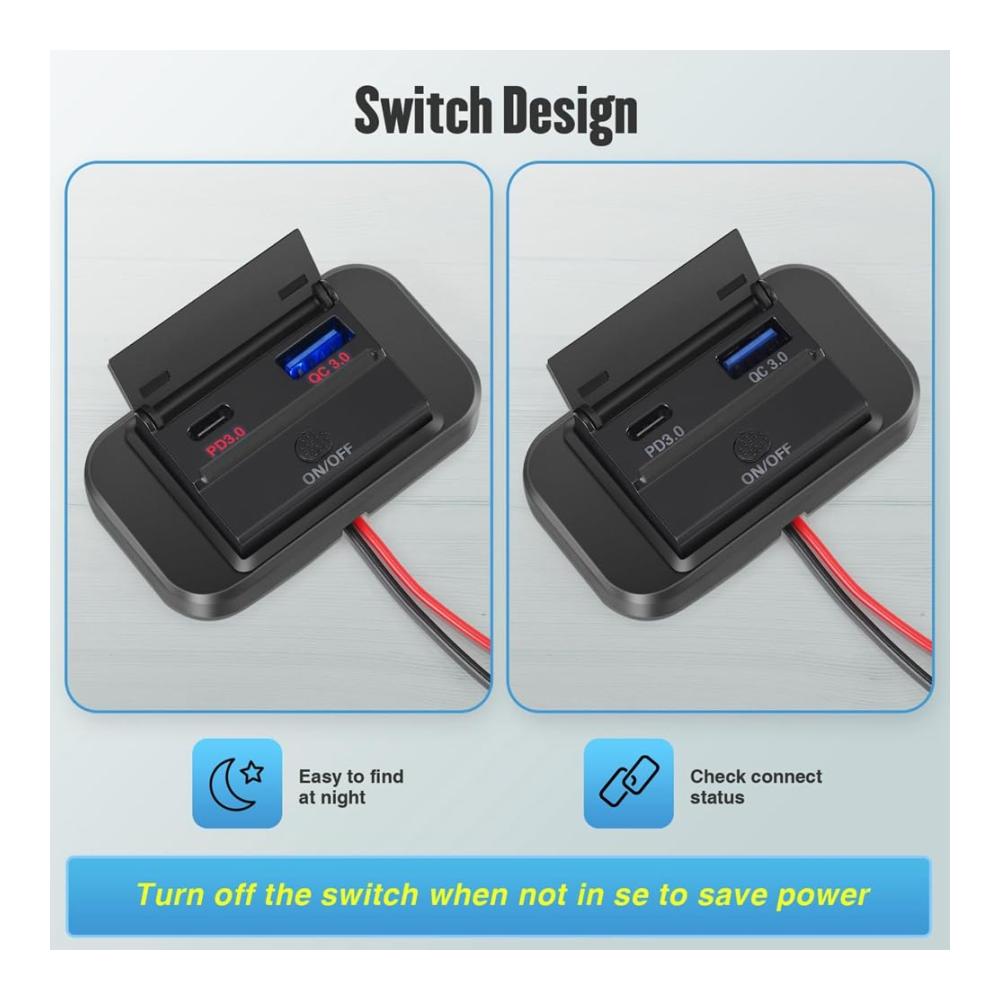 [Mit Sicherheitsnetzschalter] Die 12-V-USB-Autoladebuchse ist mit einem Ein-/Ausschalter ausgestattet, um Energie zu sparen und zu schützen und die Lebensdauer der Geräte zu verlängern. Es Strom und verbraucht im ausgeschalteten Zustand keinen Strom.