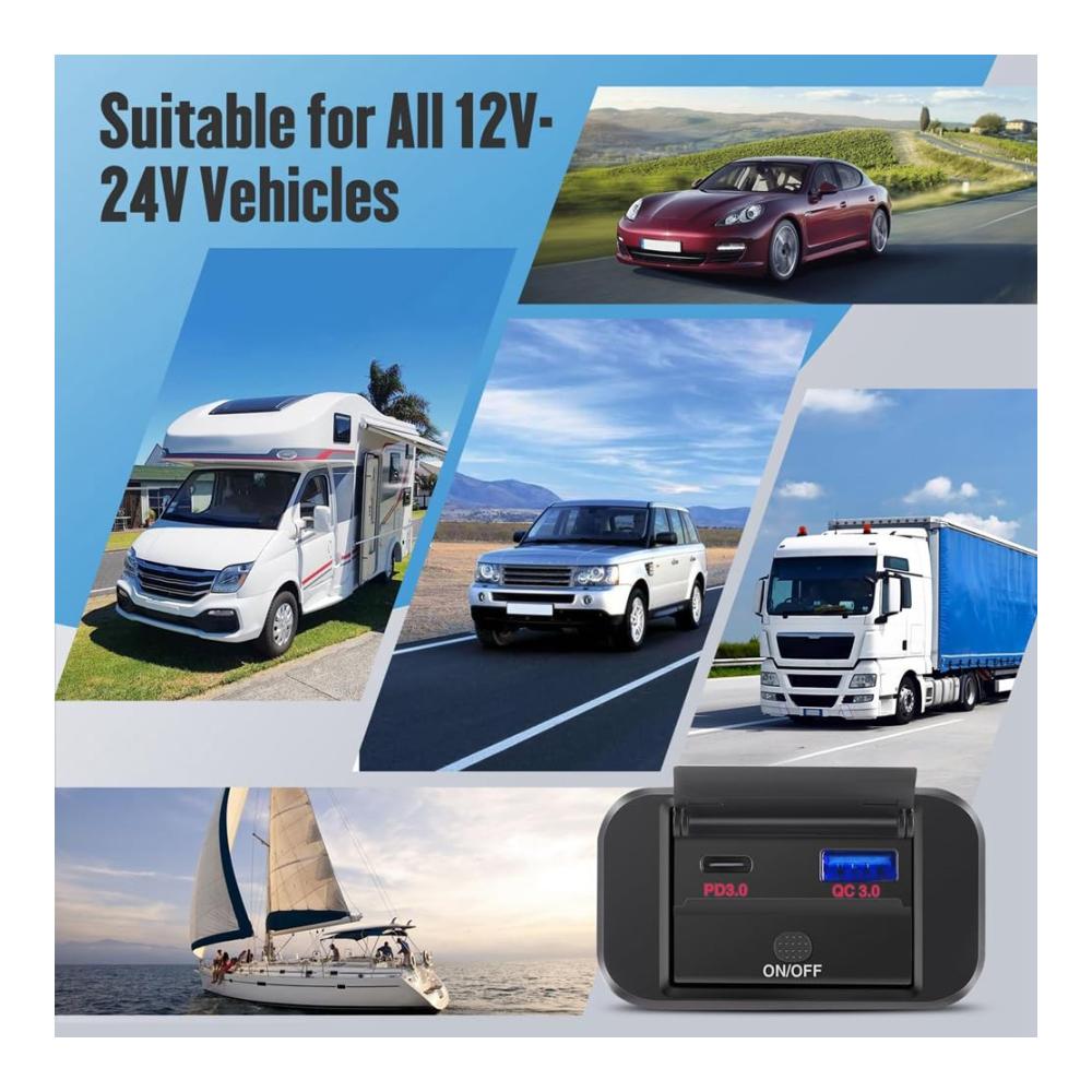 [Weit verbreitet]Geeignet für die meisten 12-24V DC-Fahrzeuge wie Autos, Boote, SUVs, ATVs, Wohnmobile, Lastwagen, Motorräder usw. Es ist für das Armaturenbrett der meisten Fahrzeuge geeignet.