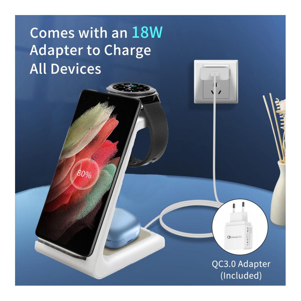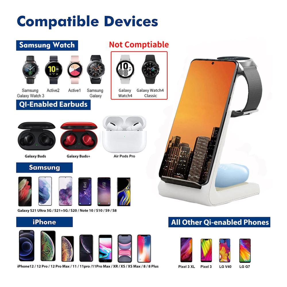 Kompatible Geräte : 【Phone Model】All Qi-enabled Phones, 【Headphone Model】AirPods 2/Pro; Samsung Galaxy Buds/Buds Live/Buds , 【Watch Model】Samsung Galaxy Active 1 40mm, Active 2 40mm/44mm, Galaxy Watch 42mm/46mm