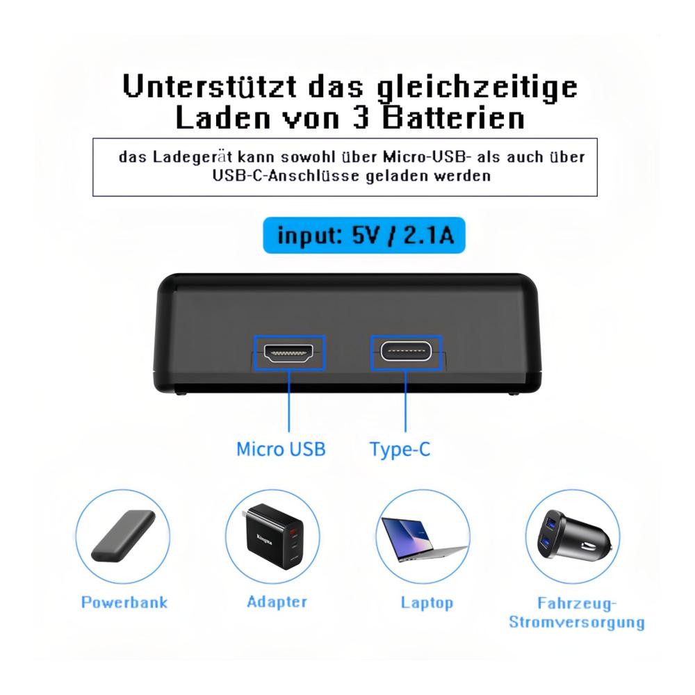 🔹【Aufladen Überall】Neben Steckdosen können Sie dieses DJI OSMO Action Ladegerät auch über Ihren Laptop, Ihre Powerbank oder Ihr Auto mit Strom versorgen.