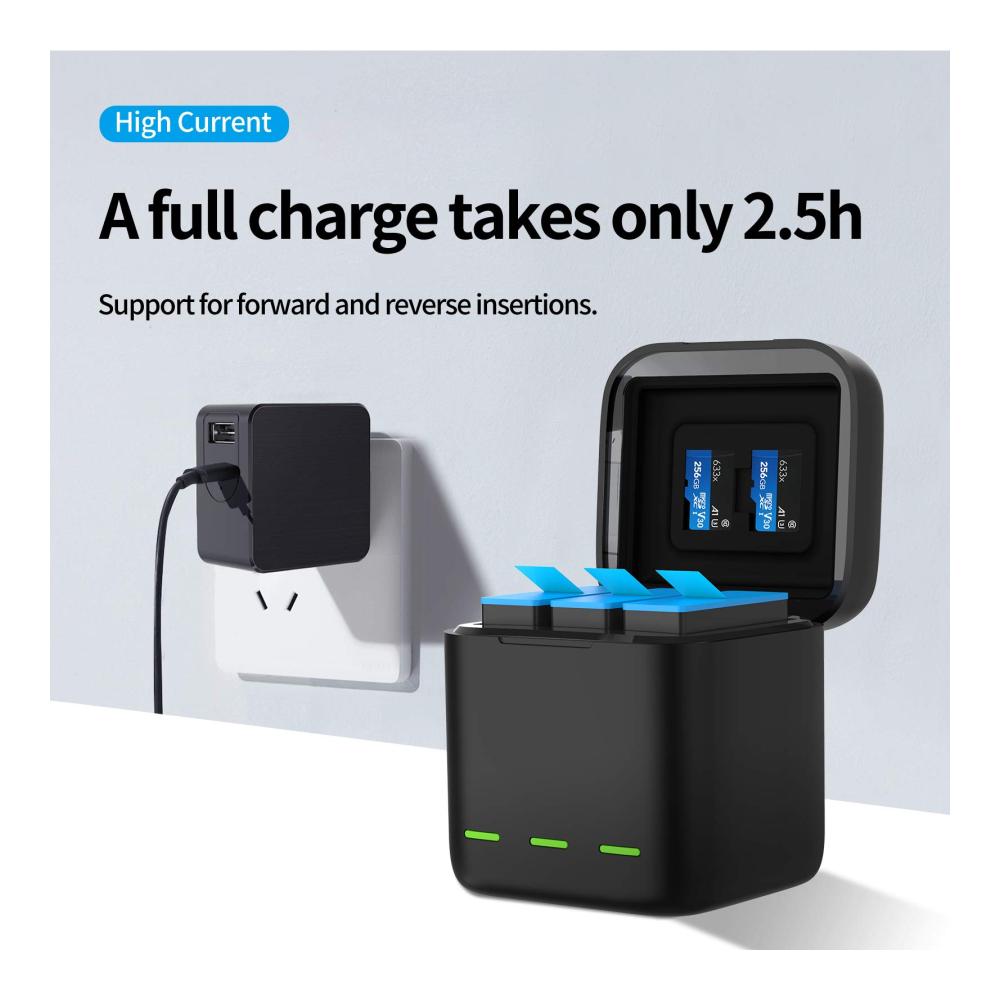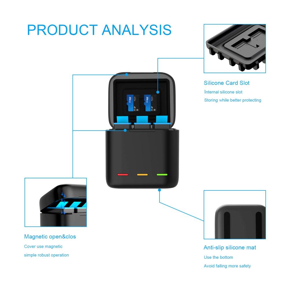 【Wiederaufladbarer Lithium-Ionen-Akku für Hero 9】Verlängern Sie die Laufzeit Ihrer Action-Kamera und zeichnen Sie jeden Moment mit 1750mAh-Ersatzbatterien auf. Gesamtladezeit für 3 Akkus: 2 Stunden