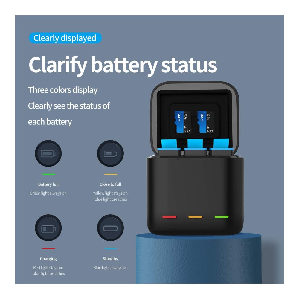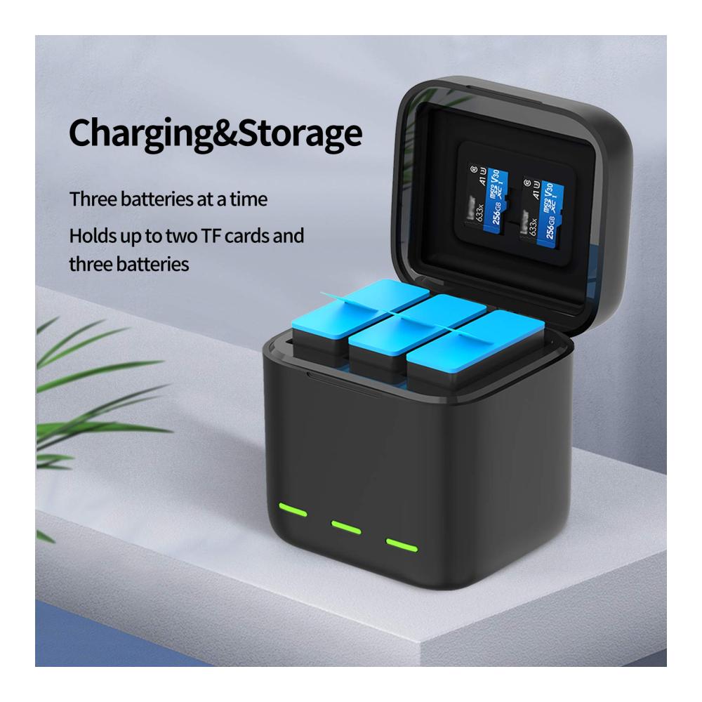 【2-in-1 3-Kanal-USB-Akku-Schnellladegerät】Verwendbar als Aufbewahrungsbox oder als Ladegerät zum gleichzeitigen Aufladen Hält Wassertropfen, Staub und Schmutz während der Lagerung fern