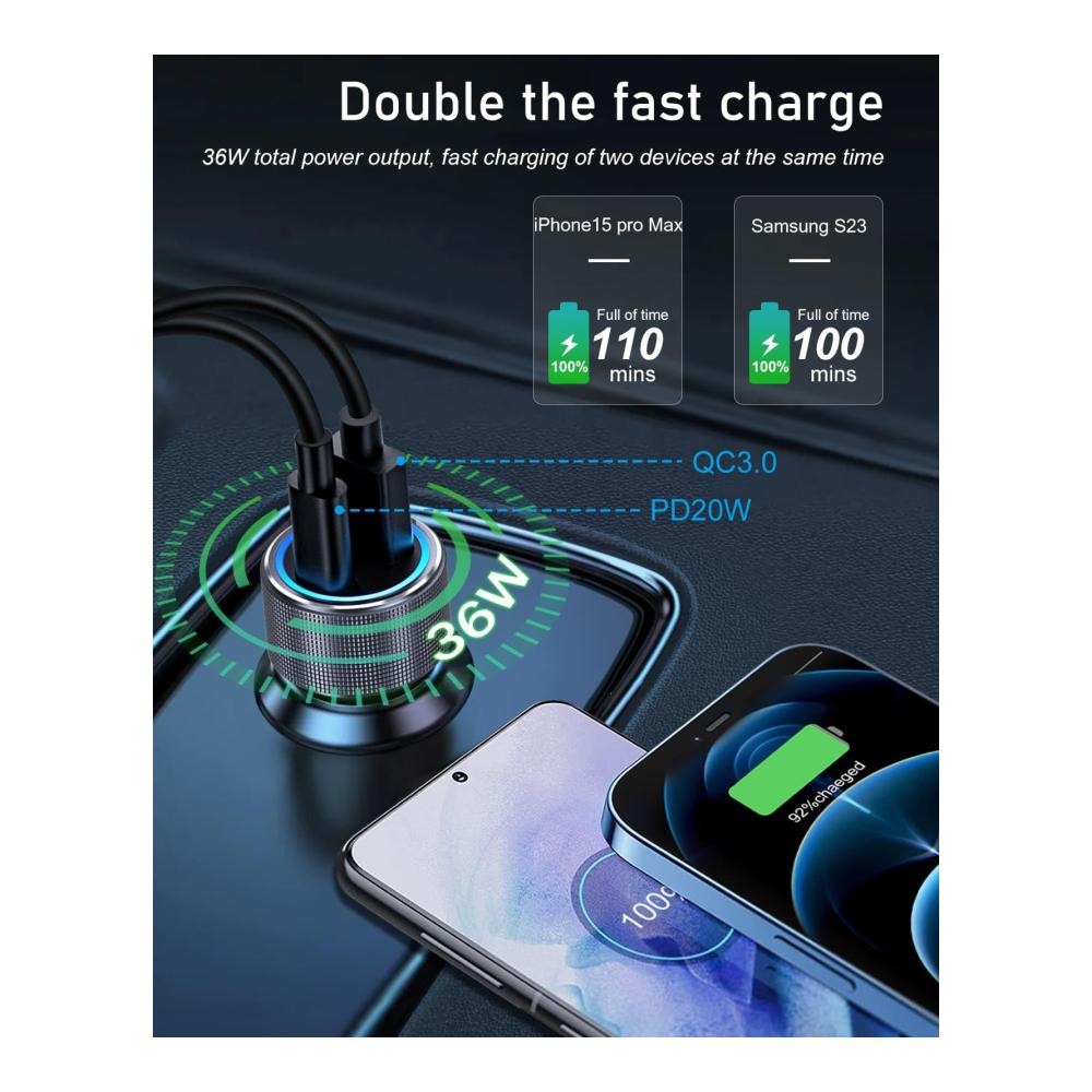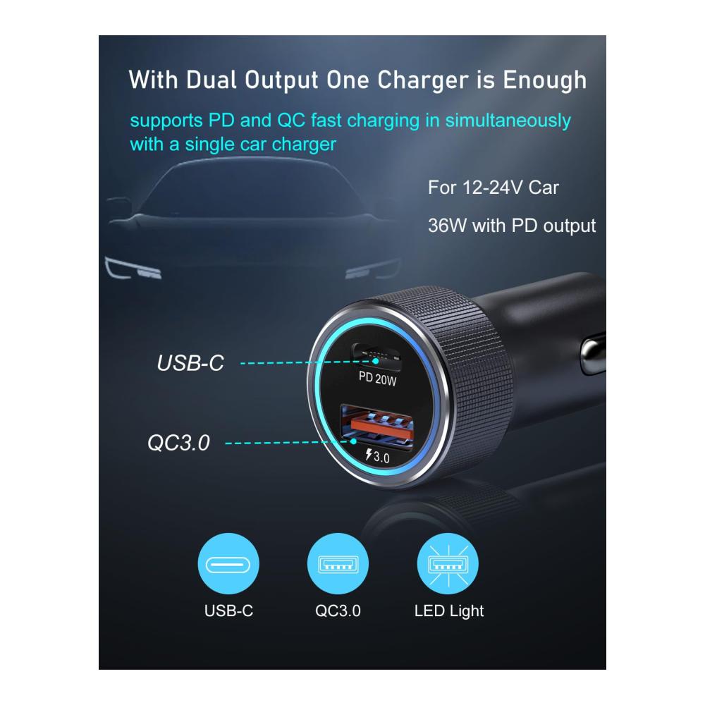 ▶【Dual-Port USB Auto-Ladegerät】Ausgestattet mit 2 Ladeanschlüssen: USB-C-Anschluss (PD 3.0) USB-A (Quick Charge 3.0), dieses schnelle Autoladegerät ermöglicht es Ihnen, den am besten geeigneten Lademodus je nach Ladeprotokoll Ihres Geräts zu wählen. Da das Autoladegerät über einen separaten PD- und QC 3.0-Protokollchip verfügt, können Sie schnell zwei Geräte gleichzeitig aufladen, ohne Energie zu verlieren.