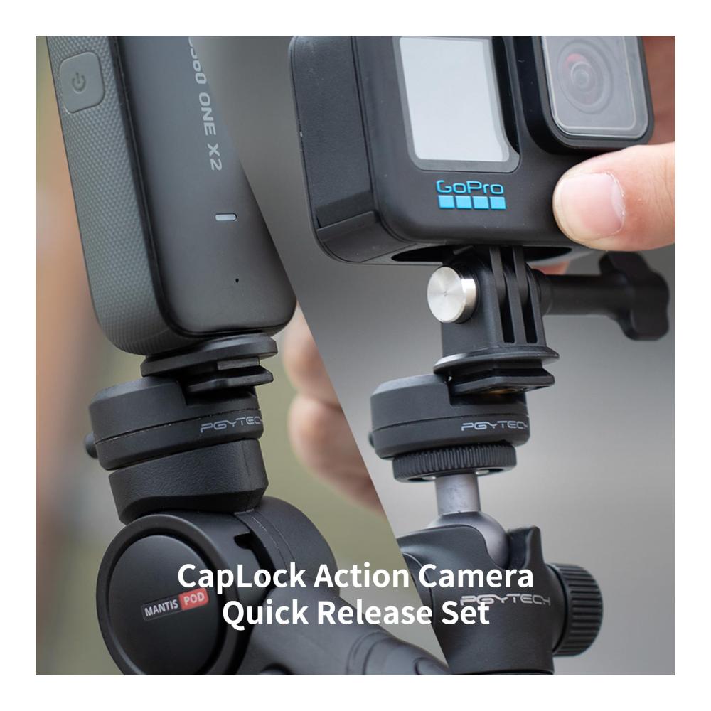 Das PGYTECH CapLock Action Camera Quick Release Set ist die perfekte Lösung für die schnelle Montage von Action-Kameras, Smartphones und anderen kleinen Fotogeräten auf Stativen und Halterungen. Mit einer 1/4-Zoll-Schnittstelle für maximale Kompatibilität und einem Doppelverriegelungsmechanismus für sichere Installation bietet es ultimative Flexibilität. Enthält sowohl Action-Kamera- als auch 1/4-Zoll-Schnellwechselplatten für nahtlose Übergänge zwischen verschiedenen Aufnahmemodi.