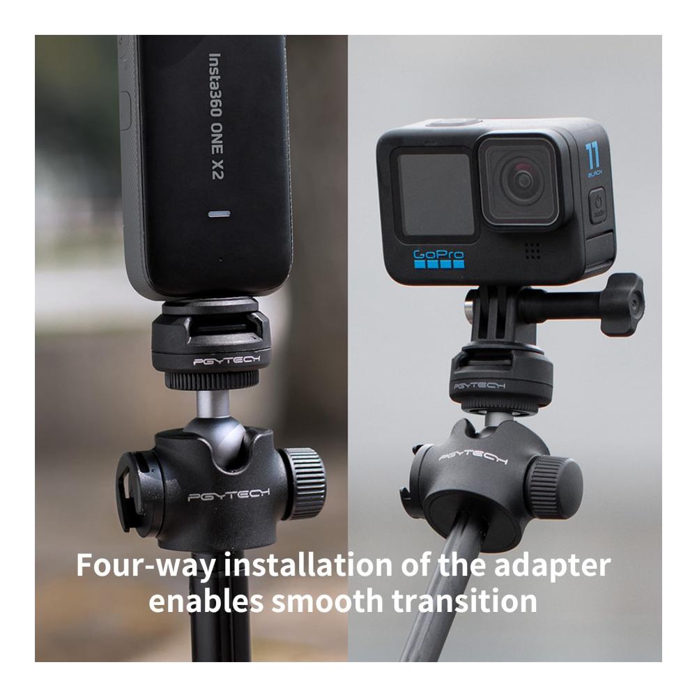 Das PGYTECH CapLock Action Camera Quick Release Set wurde für die schnelle Montage von Action-Kameras, Smartphones und anderen kleinen Fotogeräten auf Stativen und anderen Halterungen entwickelt. Es verfügt über eine 1/4-Zoll-Schnittstelle, um eine einfache Kompatibilität mit Stativen und Saugnäpfen zu gewährleisten. Mit seiner einzigartigen Schnellwechselstruktur und dem Doppelverriegelungsmechanismus sorgt es für eine sichere und schnelle Installation. Das Set enthält sowohl Action-Kamera- als auch 1/4-Zoll-Schnellwechselplatten. Die vierfache Installation des Adapters ermöglicht einen reibungslosen Übergang zwischen Selbstporträts und dem Fotografieren anderer Personen.