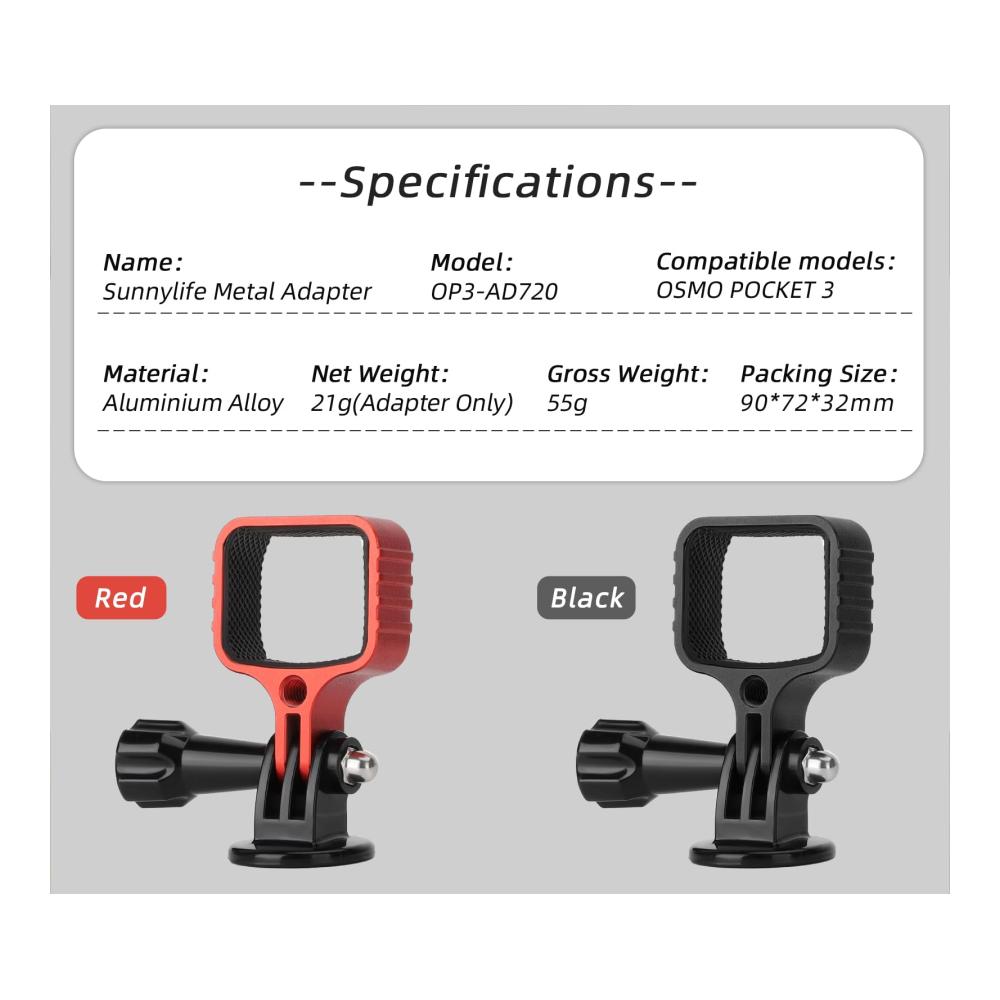 Entdecken Sie den vielseitigen Erweiterungs-Adapter für DJI OSMO Pocket 3 in elegantem Schwarz. Hergestellt aus hochwertiger Aluminiumlegierung bietet dieser Adapter eine stabile Halterung für Ihren Kamerarahmen. Mit seinem schlanken Design fügt er sich nahtlos in Ihre Ausrüstung ein. Die Kompatibilität mit OSMO POCKET 3 und das leichte Gewicht machen ihn zu einem unverzichtbaren Zubehör für unterwegs. Mit seinem festen Sitz und seiner strapazierfähigen Konstruktion ist dieser Adapter perfekt für Fotografen und Filmer, die nach Zuverlässigkeit suchen.