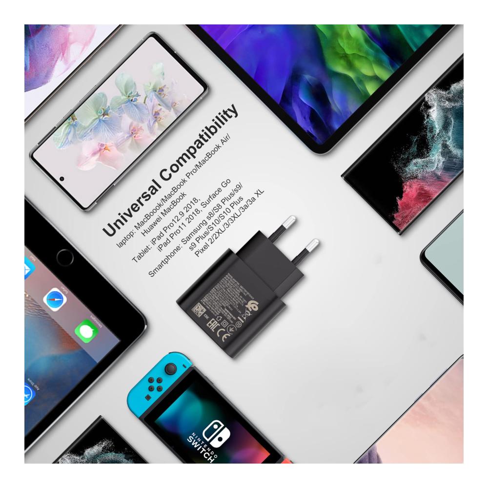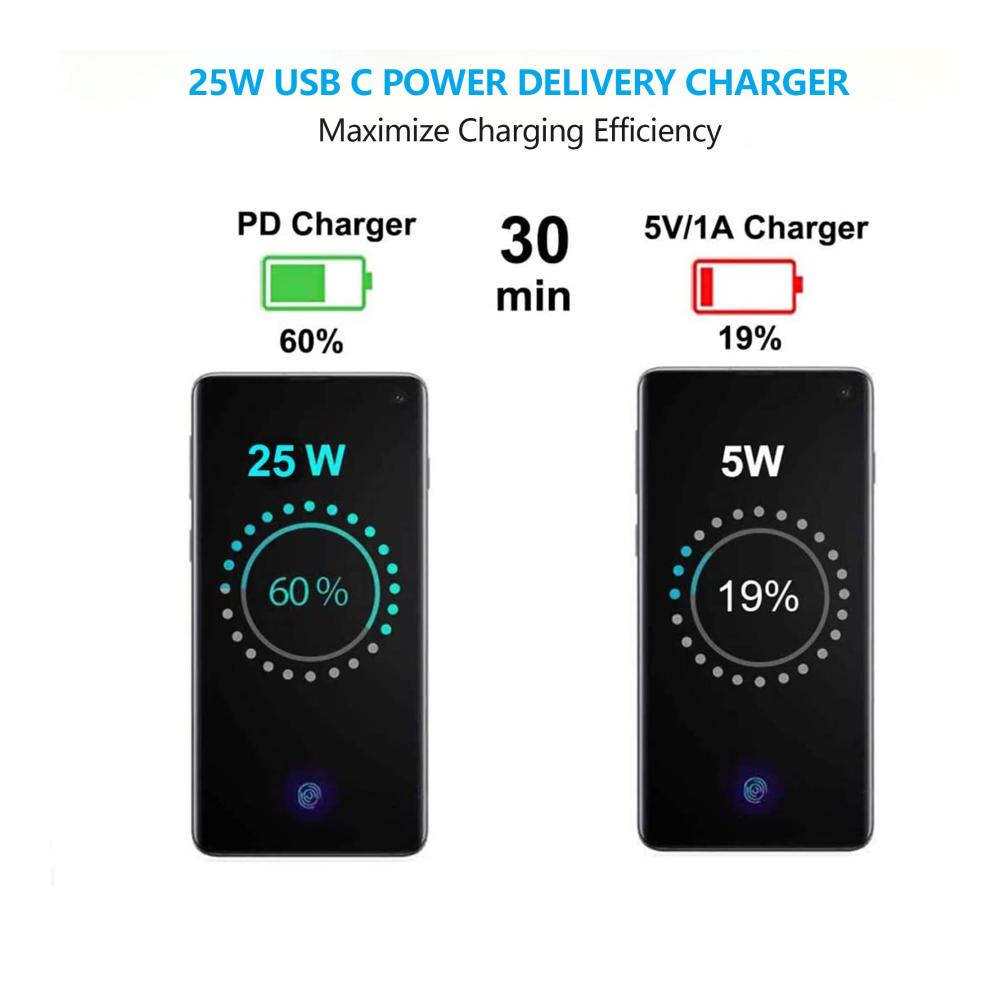 25W POWER DELIVERY: Ausgestattet mit einem USB Typ C Anschluss, PD 3.0 Ladegerät bietet Ihnen Max 25W Ausgangsleistung zum schnellen Aufladen Ihres Telefons, Tablets, iPads und anderer Geräte.