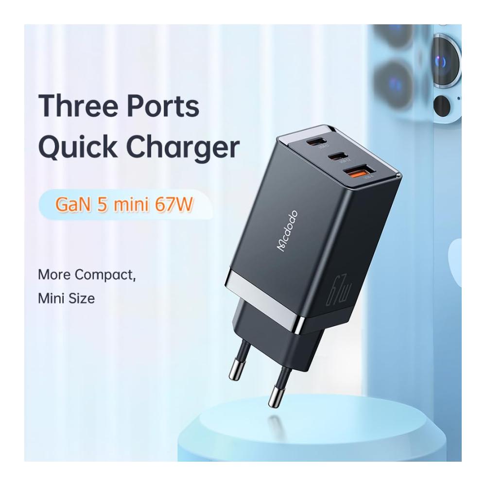 Das 67W USB C Ladegerät GAN 5 ist ein leistungsstarkes 3-Port Schnellladegerät, das eine Vielzahl von Geräten wie Laptops, iPhones, Xiaomi Redmi, Samsung und HUAWEI-Telefone schnell aufladen kann. Mit seinen drei USB-Anschlüssen und einer Ausgangsleistung von 67 Watt ist es ideal für den Einsatz zu Hause, im Büro oder unterwegs. Die Marke Mcdodo steht für innovative Technologie, kombiniert mit einem ästhetischen Design, um Produkte zu schaffen, die nahtlos in den Alltag integriert werden können.